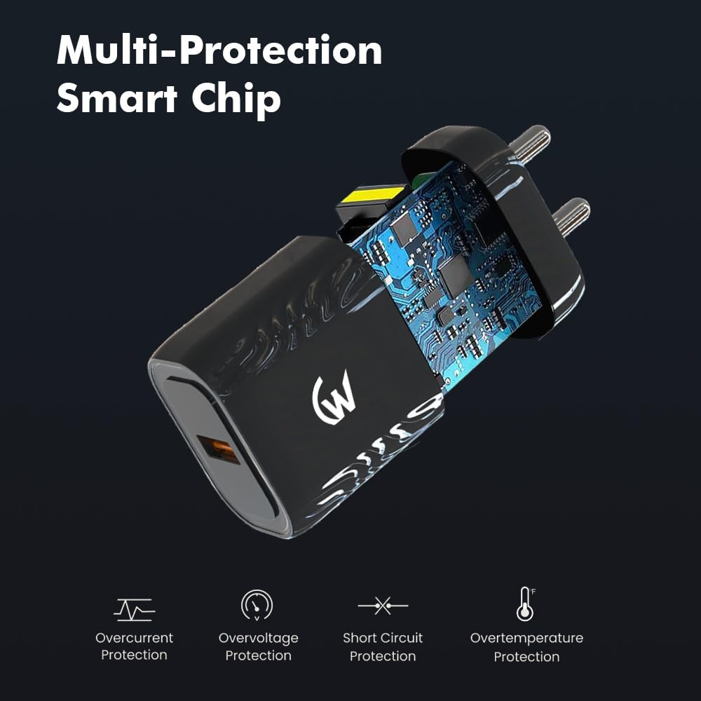 Bought this as a secondary charger for my office, and I’m honestly impressed. The build feels solid, and it’s clear the internal safety protections are doing their job — no heating issues even after long use. It charges my Realme and Redmi phones super quick. At 18W, it’s faster than standard chargers and much safer than those cheap knockoffs. Universal compatibility is a big plus — works with all my gadgets!