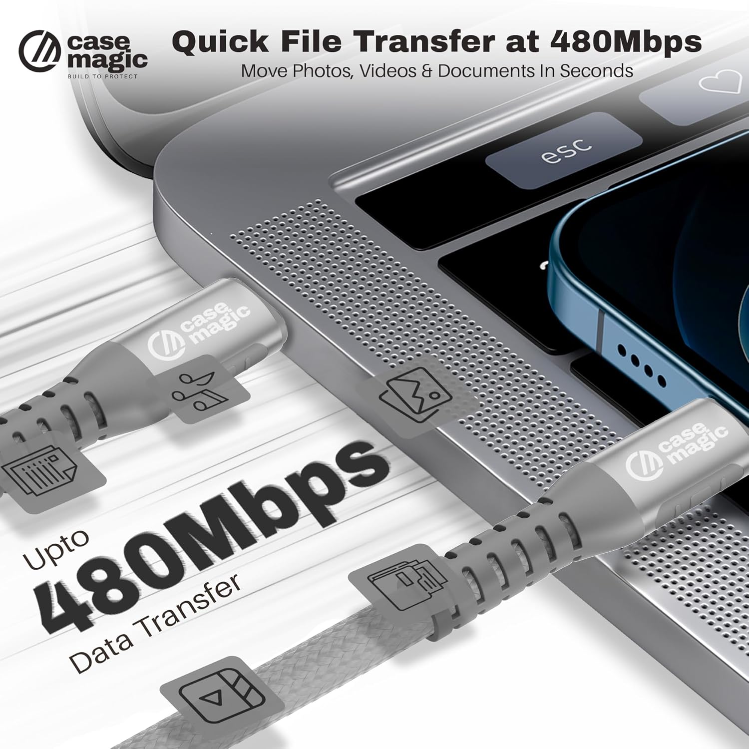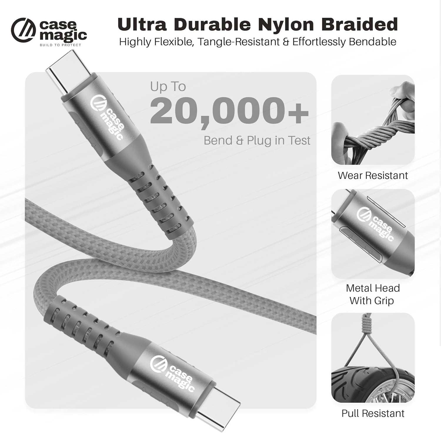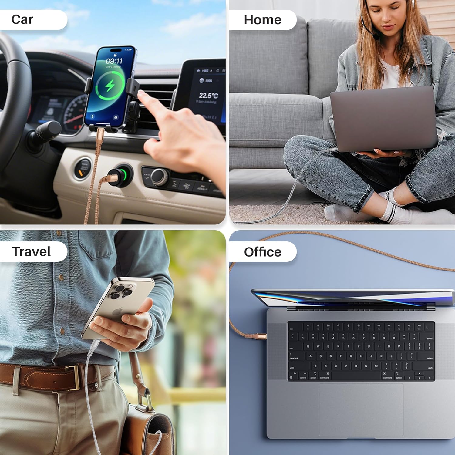 Charges my Galaxy S23, iPad, and MacBook without issues. The nylon wrap adds strength. Smooth connection every time.
