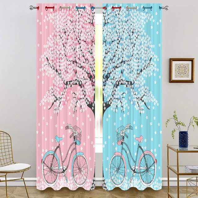 3D Blue Pink Cycle Digital Printed Polyester Fabric Curtain for Kides Room,Bed Room Living Room Color Blue Window/Door/Long Door (D.N.A 502) 4 x 9 Feet Pack of 1