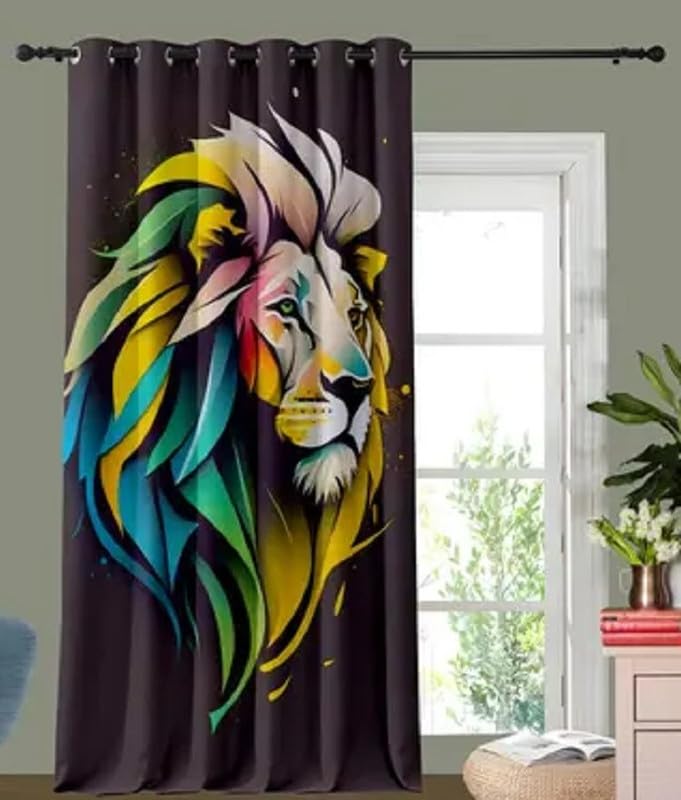 3D Yellow Green Lion Digital Printed Polyester Fabric Curtain for Kides Room,Bed Room Living Room Color Green Window/Door/Long Door (D.N.A786) 4 x 7 Feet Pack of 1