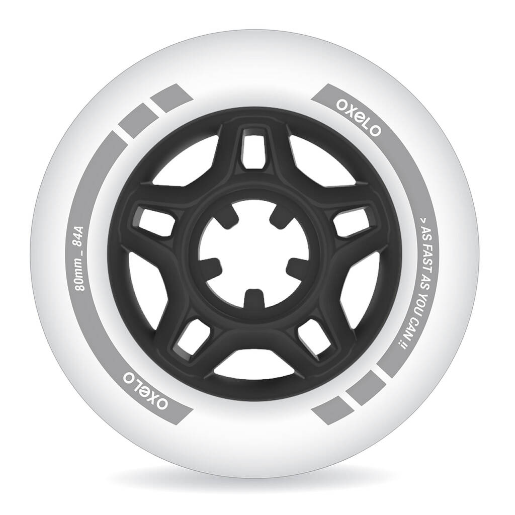Compatibility Wheels adapt to all skates accepting 80mm wheels (Oxelo: FIT100, FIT500, Freeride MF500, FIT 5 Jr, Fit 5, Sneak-In, Freeride 5SB)