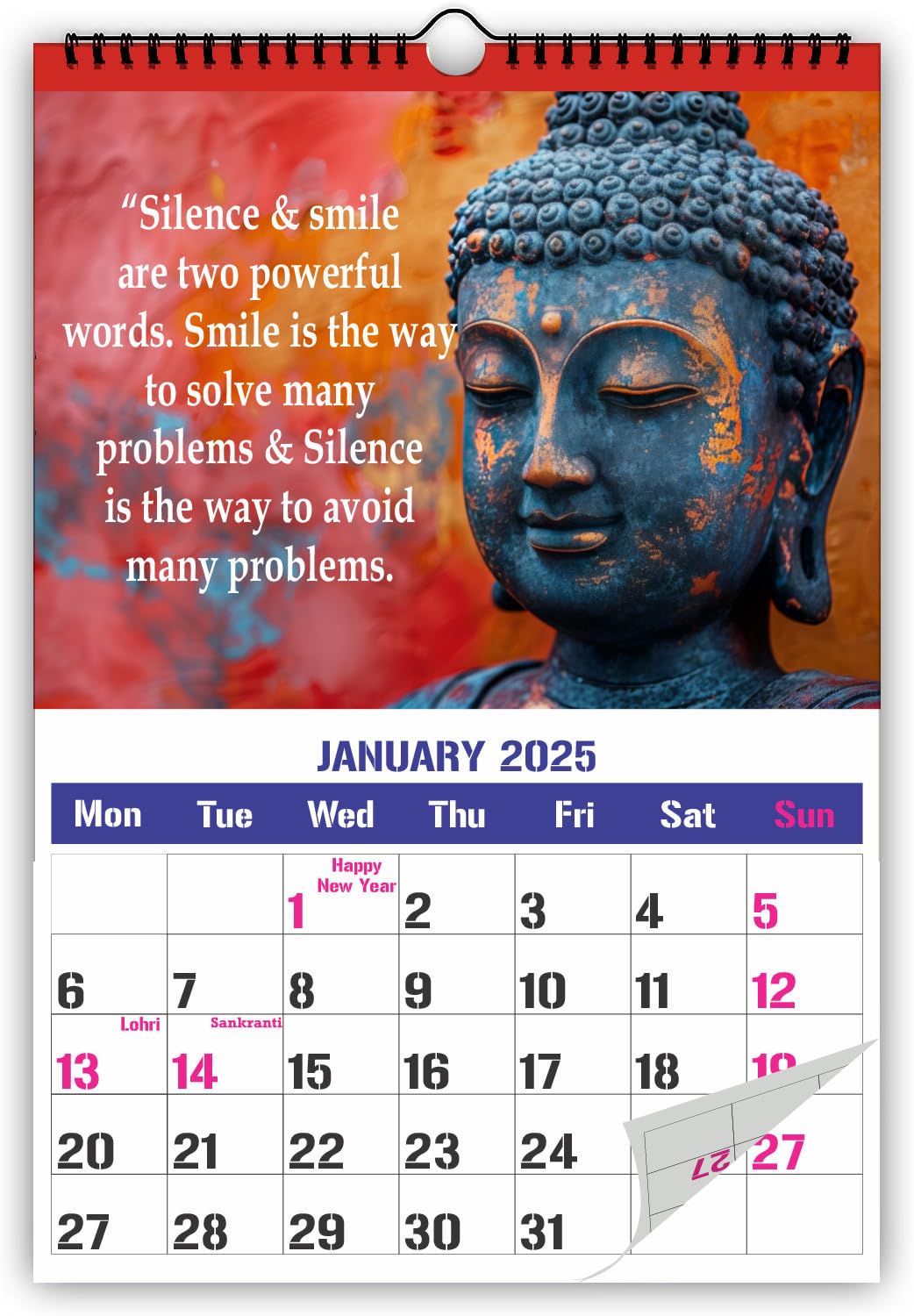 AccuPrints Buddha 2025 Wall Hanging Calendar and Planner (12 x 18 inches) Paper -130 gsm