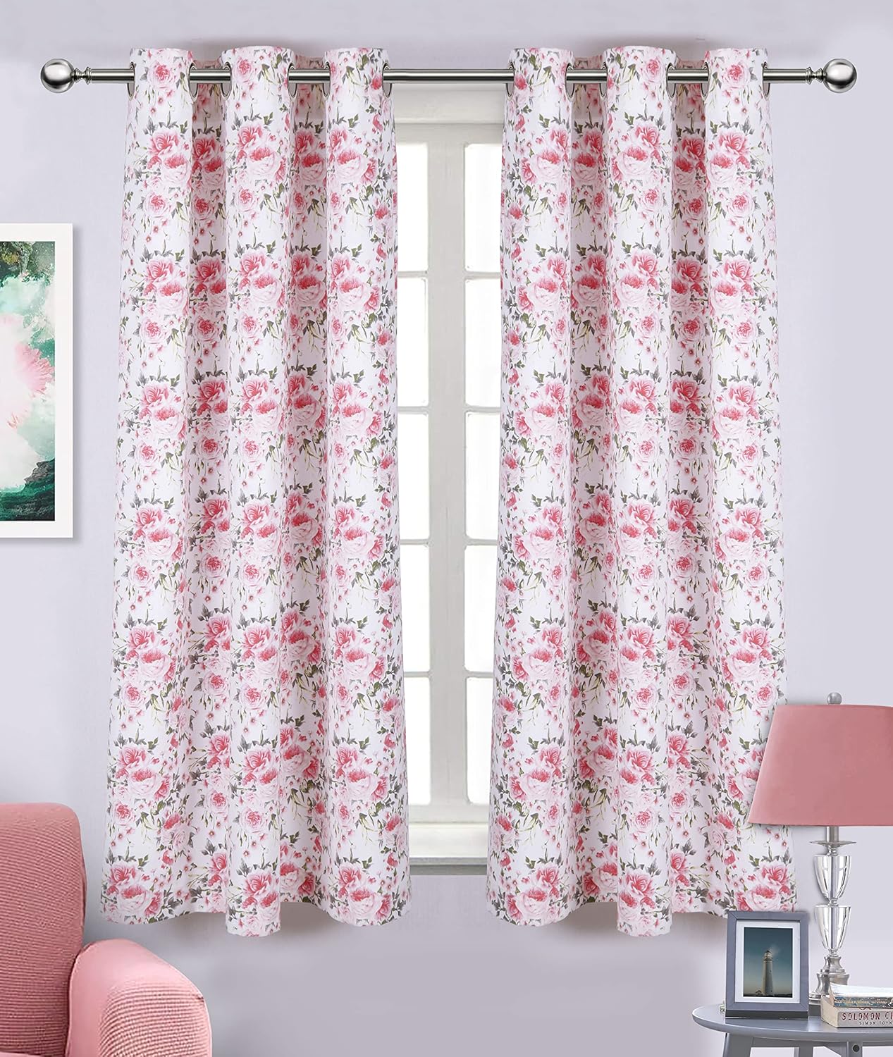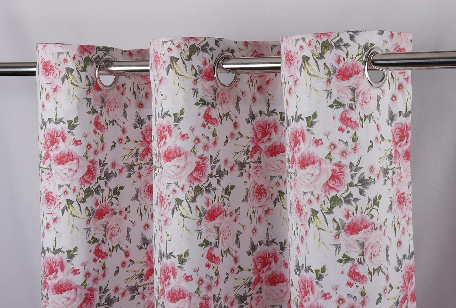 AIRWILL, Cotton Designer Pinky Floral Themed Designer Window Curtains, Sized 4ft in Width and 5ft in Length. Pack of 2 Pieces