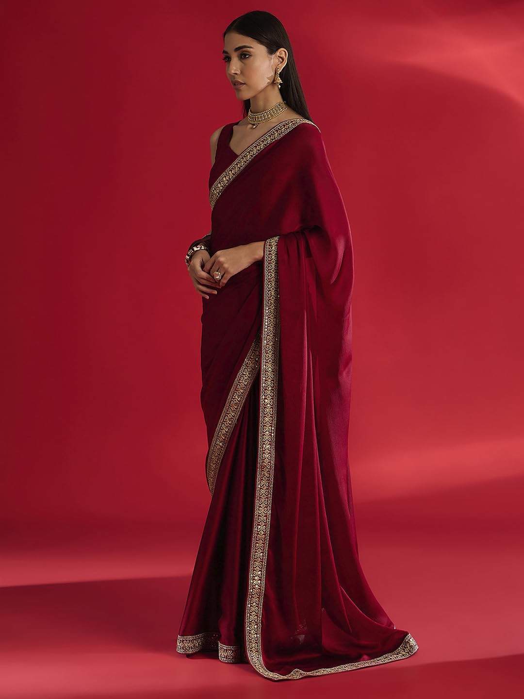 AKHILAM Women’s Satin Solid Saree With Unstitched Blouse