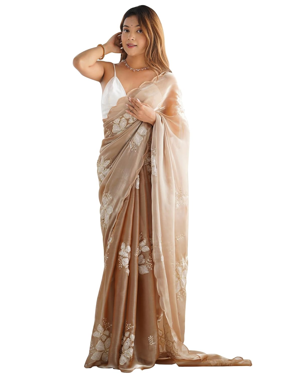 AKHILAM- Women’s Shimmer Organza Sequence ! Embroidery Saree With Unstitched Blouse Piece ! Beautifull Looking