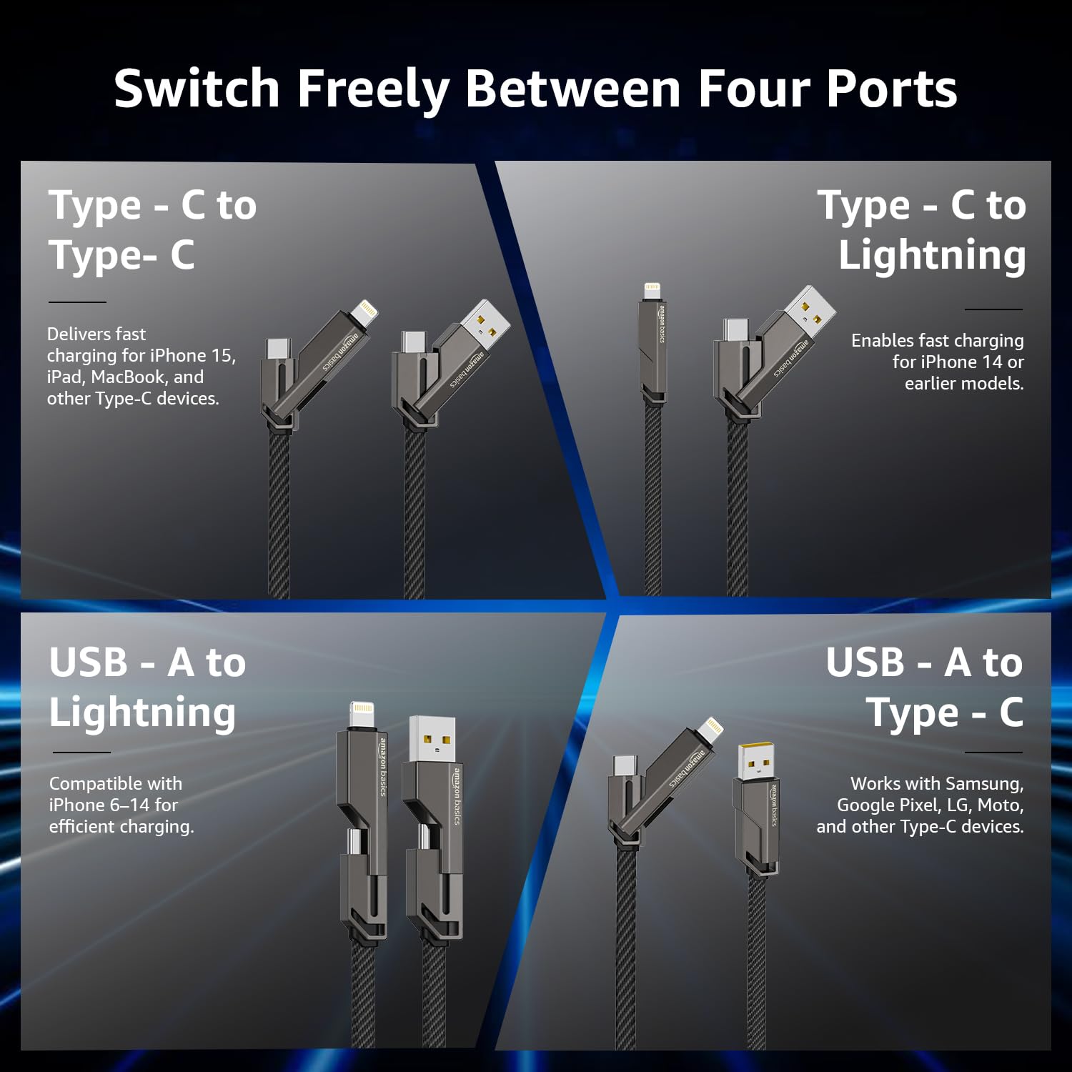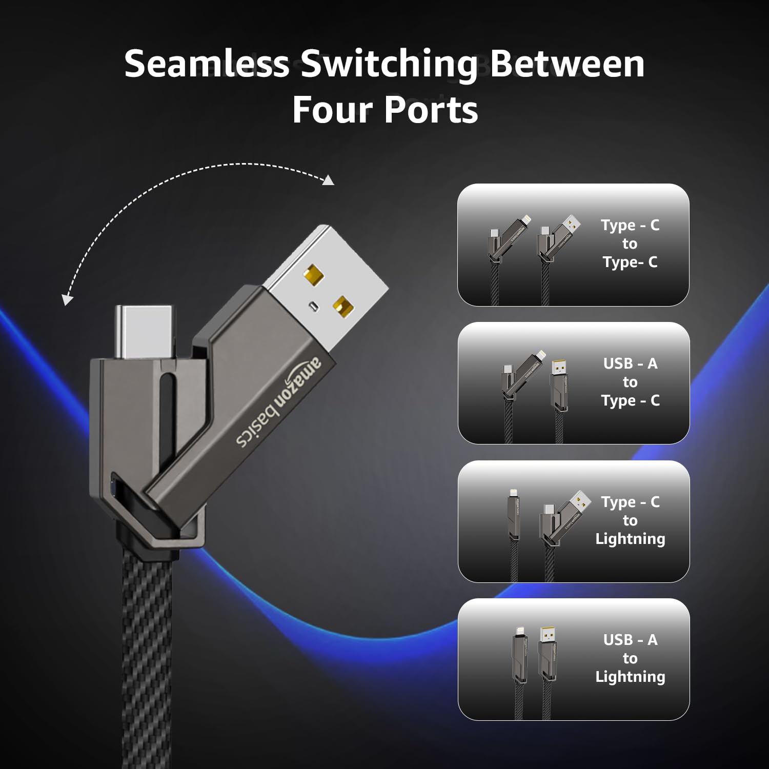 Excellent item recently purchased this 4 in 1 metal braided 60 w charging cable & it works really great looking also fabulous and charging speed are also good and of course easy to use and Very efficient charging All in one solution for our charging issues Highly recommended for its connectivity and value for money wiring so strong