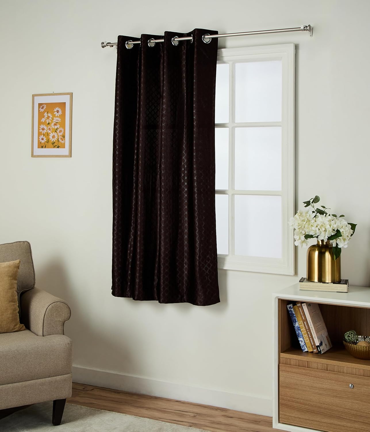 Elevate your home decor with our Premium Polyester Curtains! Crafted from 100% high-quality polyester, these curtains ensure exceptional durability and maintain their elegant appearance over time. Featuring a contemporary geometric print in a warm coffee shade, they add a modern touch to any space. Made from Durable fabric, these curtains guarantee long-term durability, vibrant color retention, and an elegant pattern. Lightweight and easy to handle, they offer convenience with easy movement, folding, and machine washing for effortless maintenance. Experience luxury and functionality combined in one exquisite product!