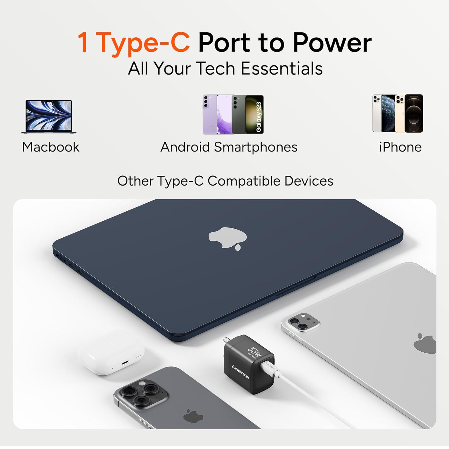 Compact, lightweight, and charges super fast. Works flawlessly with my phone and laptop. Great quality at an affordable price!