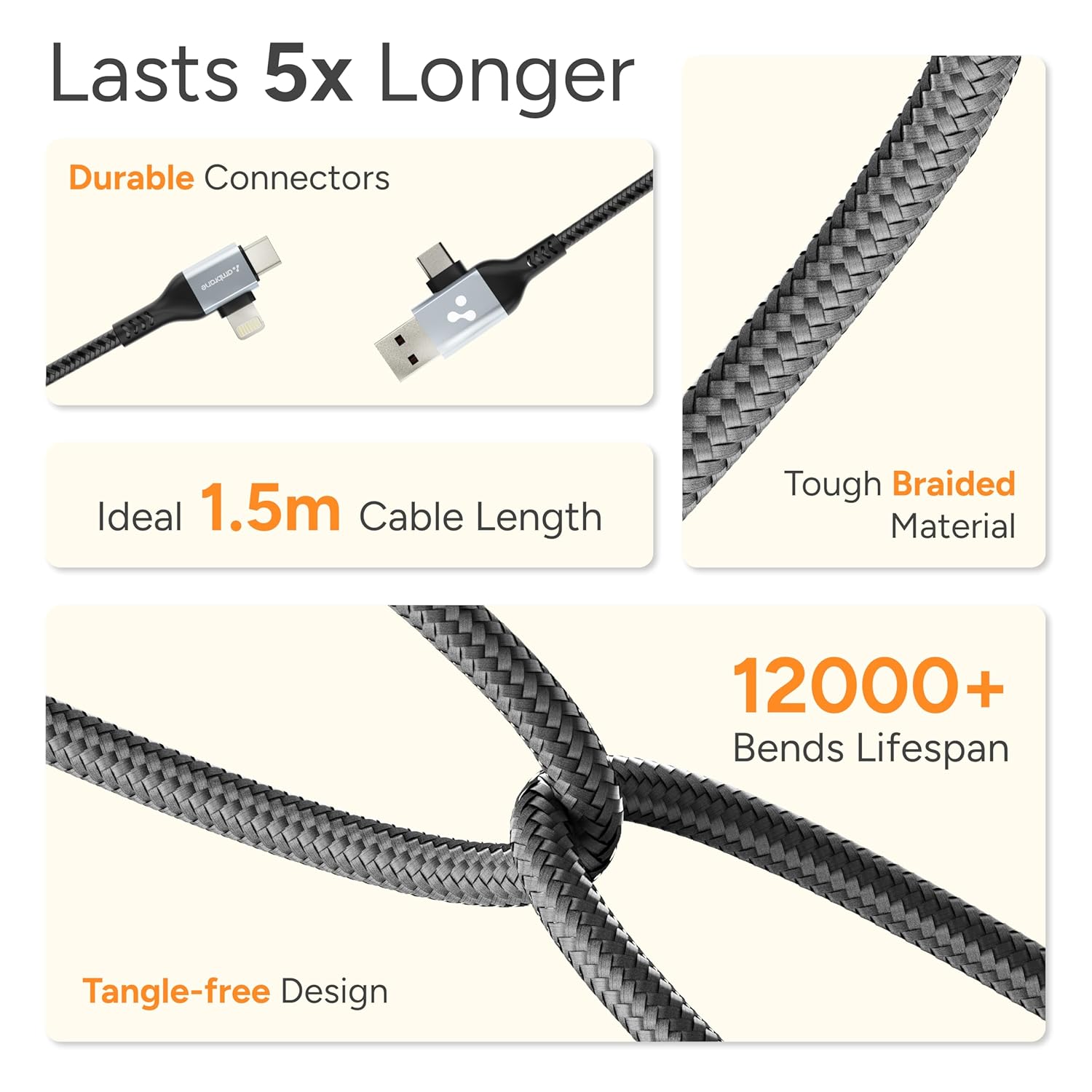 Well conceived product – one charger cable to rule them all. Works for all devices all places.