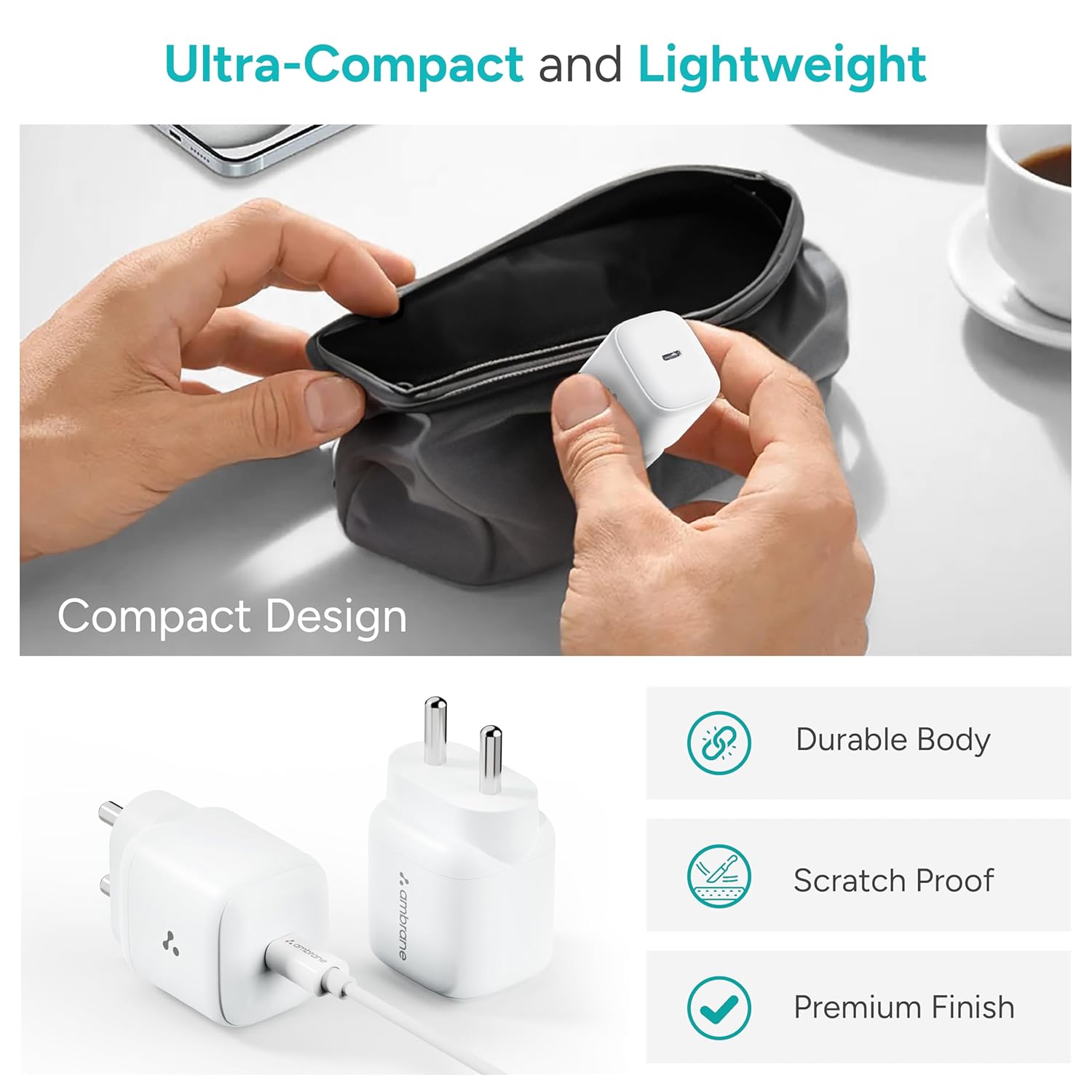 This charger is designed to be ultra-compact yet highly durable. Its lightweight build makes it easy to carry, while its sturdy construction ensures long-lasting performance, even with frequent use.