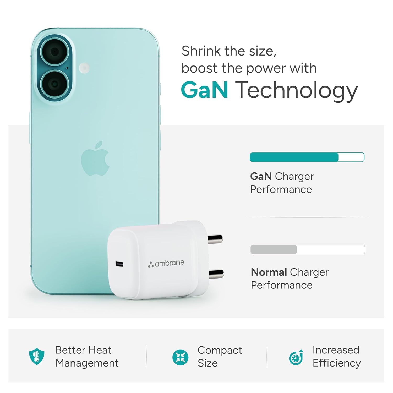 Ambrane 45W Fast Type C Charger Adapter for Mobiles & Type C Laptops, Small Size, GaN Charger, PD Technology, for iPhone, Samsung, MacBook, Android Mobiles, Type C Laptops, iPad (Charge i45, White)
