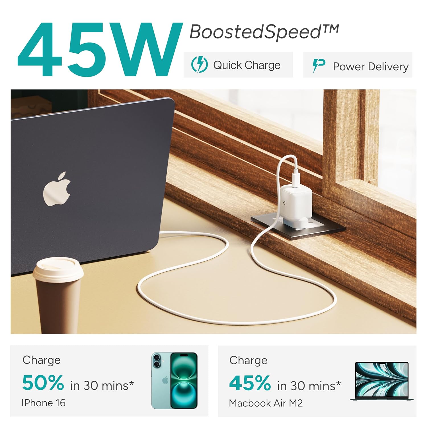 With 45W BoostedSpeed, this charger delivers fast, efficient charging for smartphones, tablets, and laptops. It ensures devices power up quickly, helping users save time and stay productive.