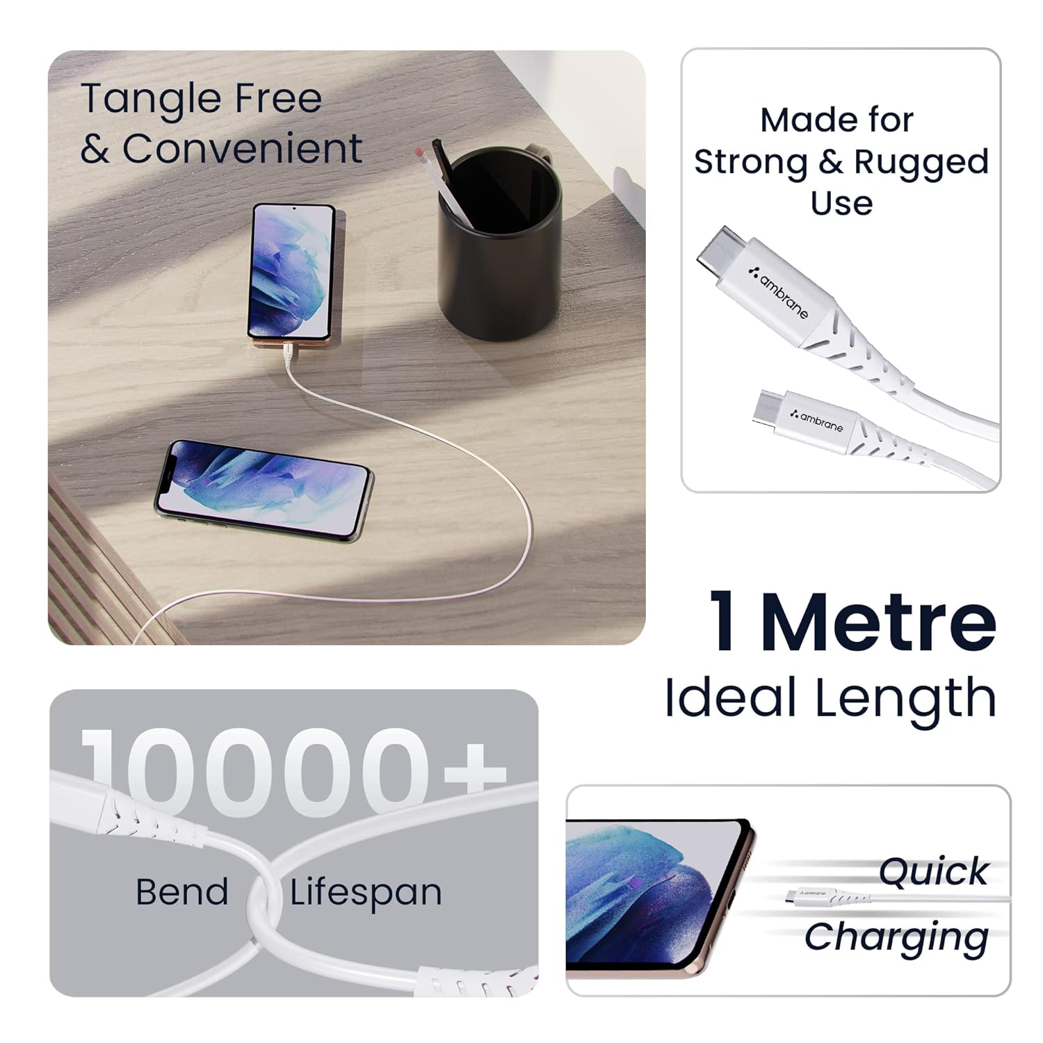 Durable Cable- Using only premium quality materials and a tough, durable PVC Coating, the Ambrane USB cable is built for connecting and disconnecting over and over again without signal loss.