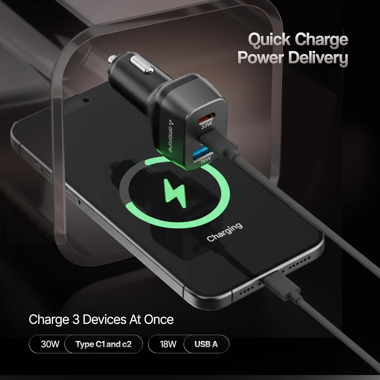 Ambrane 84W Triple Output Fast Car Charger with 2 Type-C & 1 USB, 33W Type C Charging with PD Technology, Fast Charging Adapter Compatible with Cars for iPhone & Android Smartphones (Charge C84,Black)