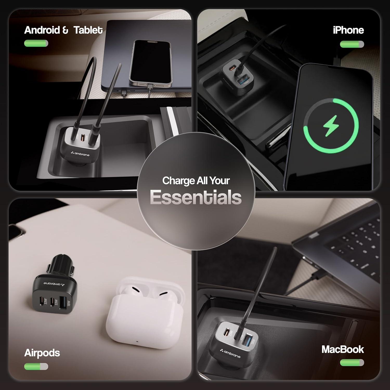 Macbook Charging: Charge your MacBook on the go, just plug it in and drive stress-free!