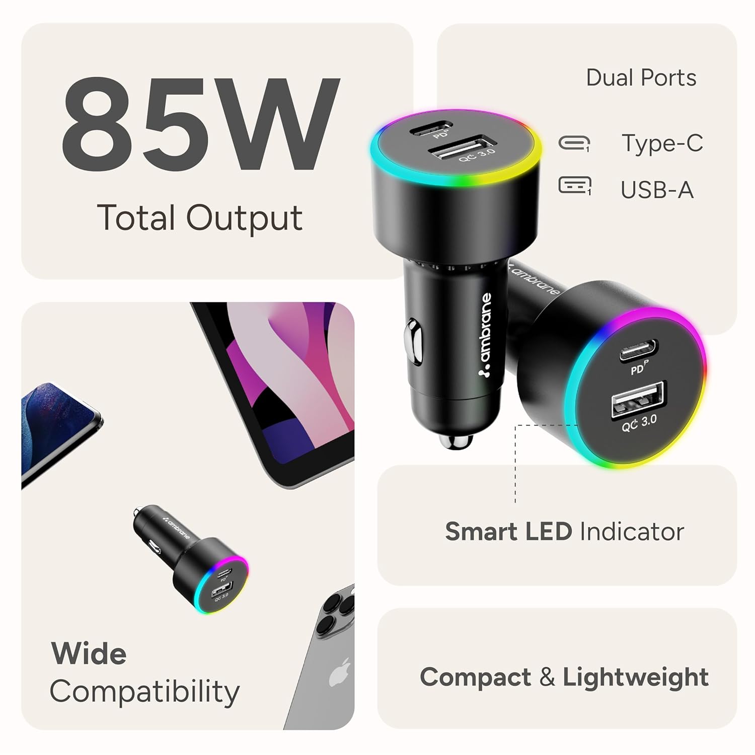 Here’s a polished review based on your input:—Reliable and Fast – Finally a True 65W Charger for My Laptop!After trying multiple chargers that claimed to support 65W charging for laptops and failed, I decided to give this one a final try before giving up. As a frequent traveler, working on the go was always a hassle—until now.To my surprise, this charger actually charges my Lenovo laptop (65W) at full speed, just like the original charger. I tested it while working, charging from 40% to 85% in just 35 minutes. That’s impressive!A few important notes:Make sure you use a 100W PD USB-C to USB-C cable. The right cable makes all the difference.The charger does get a bit warm, but that’s expected with high-speed charging.I tested it with the car stationary and engine running—the connection felt sturdy and secure.I’m planning to test it while driving to see how reliable and stable it remains on the move. But so far, highly recommended for anyone needing a real, portable laptop charging solution on the go!—Let me know if you’d like a shorter version or if this is for a specific platform like Amazon.Port capacity:Here’s a polished review based on your input:—Reliable and Fast – Finally a True 65W Charger for My Laptop!After trying multiple chargers that claimed to support 65W charging for laptops and failed, I decided to give this one a final try before giving up. As a frequent traveler, working on the go was always a hassle—until now.To my surprise, this charger actually charges my Lenovo laptop (65W) at full speed, just like the original charger. I tested it while working, charging from 40% to 85% in just 35 minutes. That’s impressive!A few important notes:Make sure you use a 100W PD USB-C to USB-C cable. The right cable makes all the difference.The charger does get a bit warm, but that’s expected with high-speed charging.I tested it with the car stationary and engine running—the connection felt sturdy and secure.I’m planning to test it while driving to see how reliable and stable it remains on the move. But so far, highly recommended for anyone needing a real, portable laptop charging solution on the go!