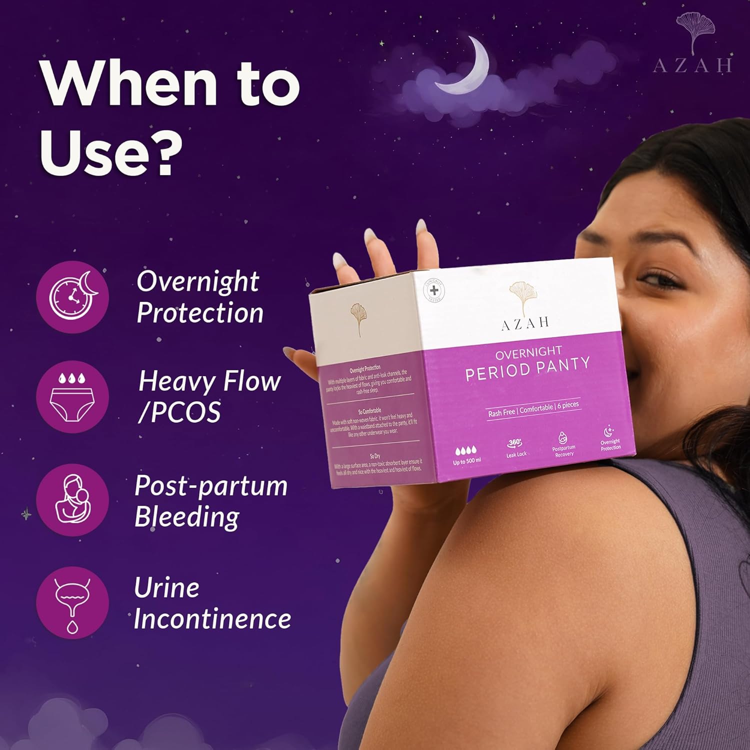 AZAH Periods Panty For Women [M-L Pack of 6] | 12 Hrs Protection | Super Absorbent 360° Coverage| Leak Proof Overnight Period Panty for Girls |Heavy Flow | Rash Free Disposable Panties After Delivery