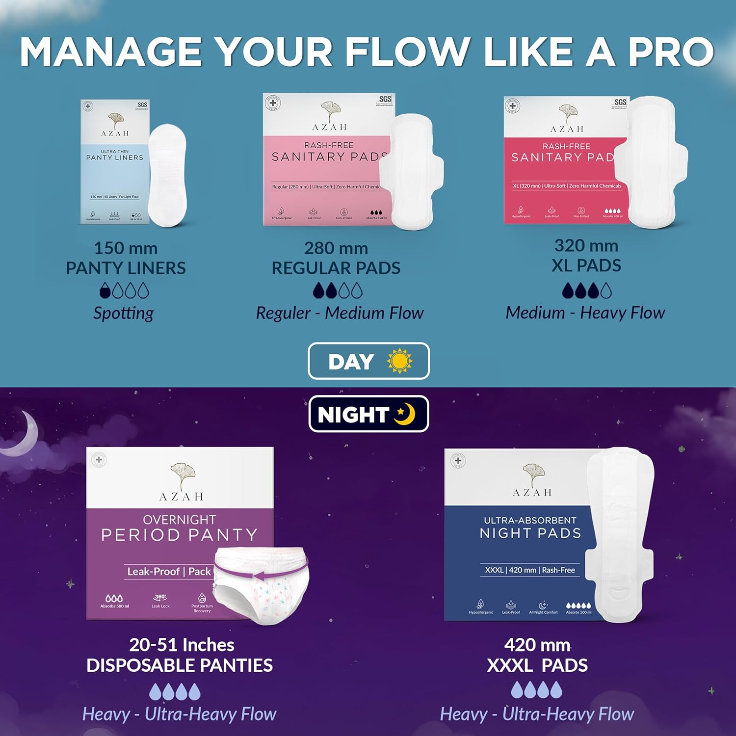 🩸SAY GOODBYE TO STAINS: Switch to Azah’s disposable period panty to experience 360° coverage on the front, back, and sides.