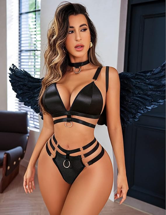 • Feature: This strappy exotic lingerie sets designs with lace mesh cup with a little bit push ups strappy bra, and mesh lace dress one piece link by the straps. Special design show good quality and fashionable