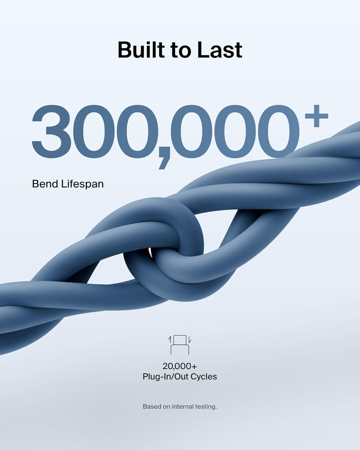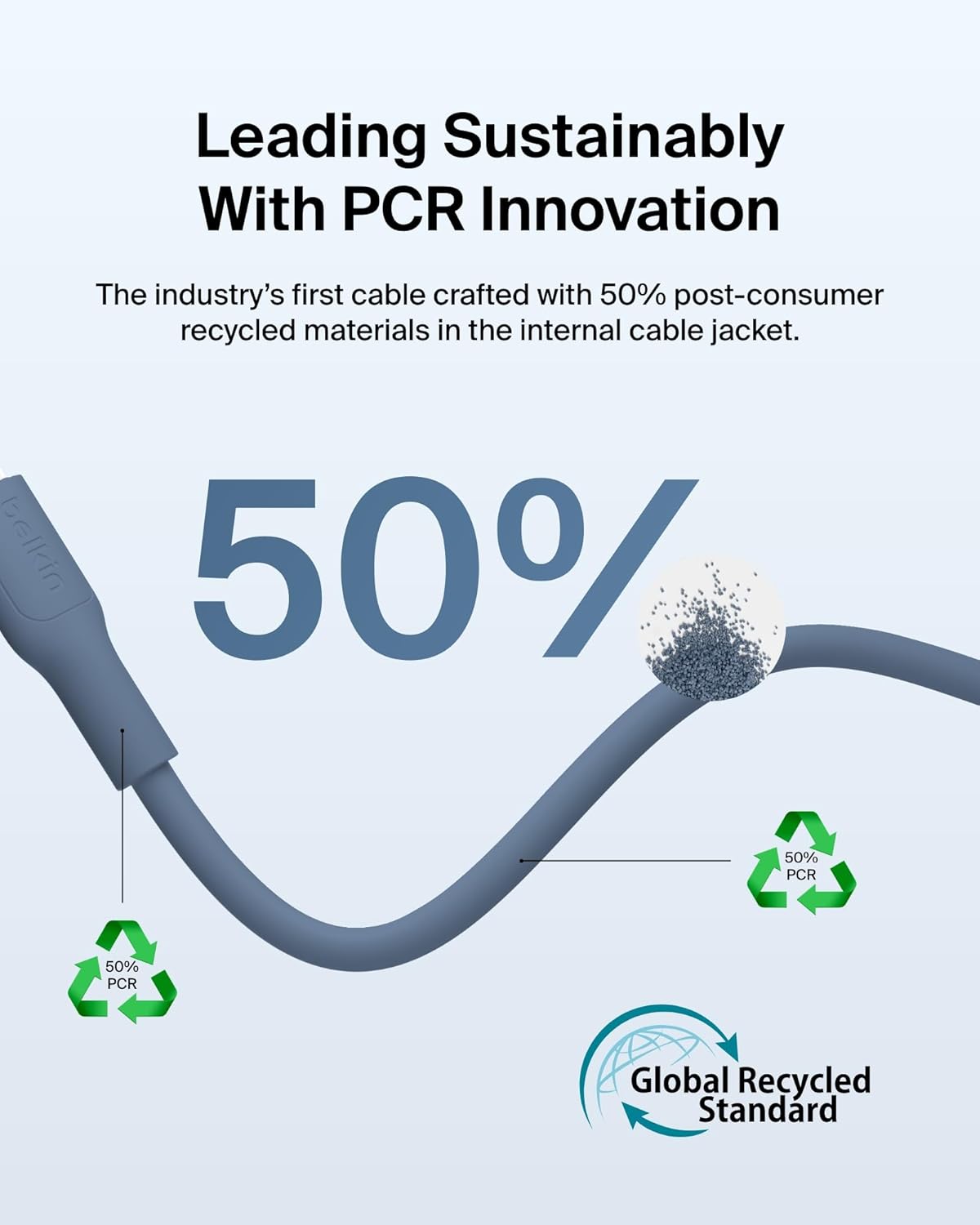 SUPERIOR DURABILITY: Our soft, flexible cable is made with an extra durable 95% PCR PET braided exterior with 50% PCR PET head and internal jacket, tested to survive over 30,000 bends and 10,000 plug-ins*** for up to 30x the durability of most cables.