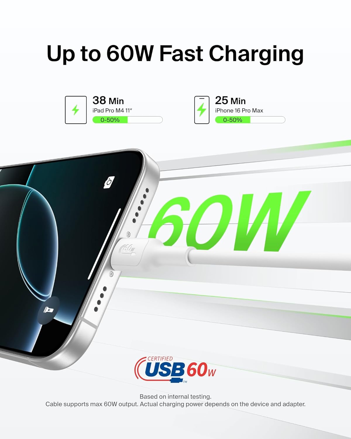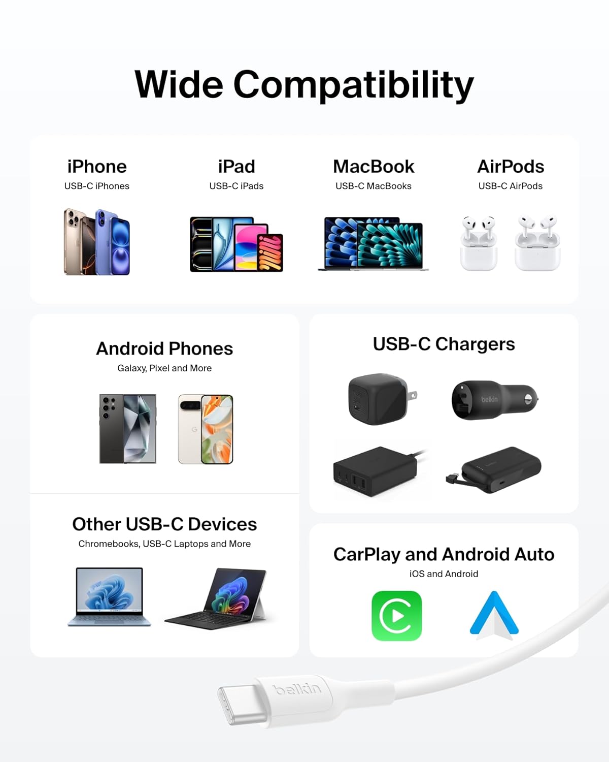 The Belkin USB-C to USB-C Fast Charging Cable is excellent. It supports 60W Power Delivery, making it perfect for fast charging my laptop, tablet, and smartphone. The build quality feels premium, the connectors are sturdy, and the 1-meter length is ideal for both desk and travel use.Being USB-IF certified, it’s reliable and safe for all compatible devices. Highly recommended for anyone looking for a durable, high-speed charging cable!