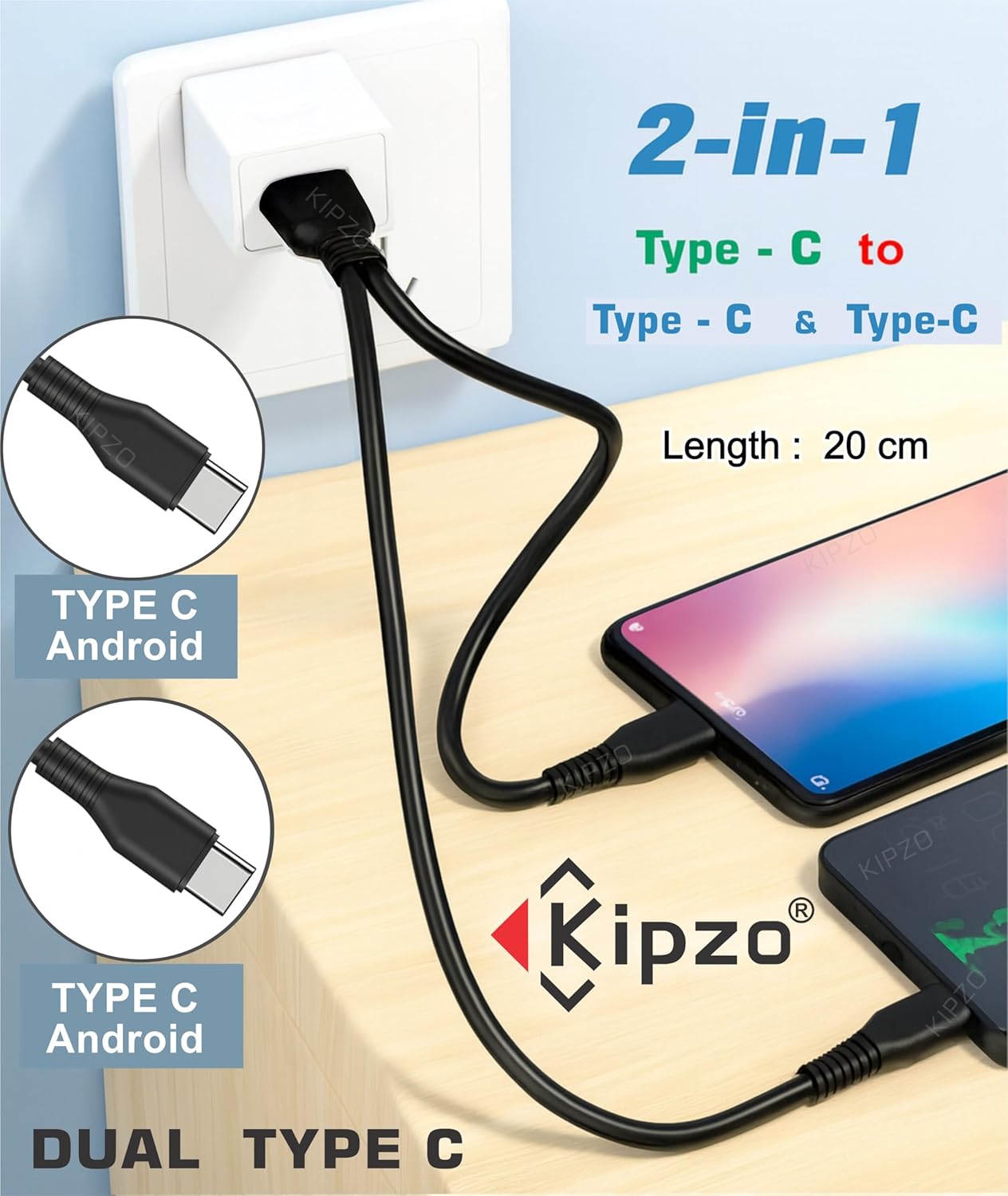 Stay powered wherever you go with the KIPZO 2-in-1 Dual Type-C Splitter Cable. Designed for versatility and convenience, this short and durable charging cable lets you charge two Type-C devices at once — ideal for power banks, Android phones, Galaxy, OnePlus, and iPH 16 Pro series.