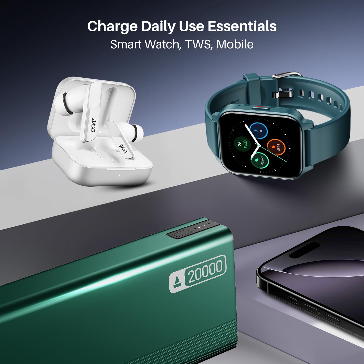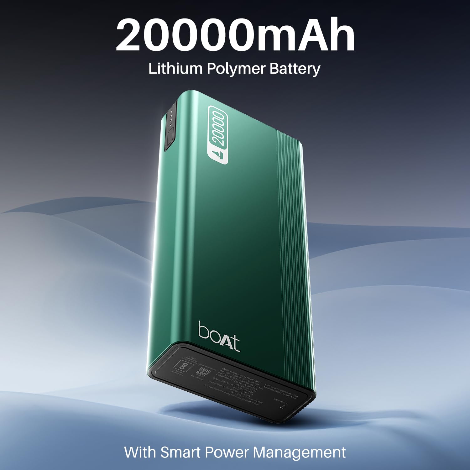 20000mAh Capacity: With a powerful 20000mAh capacity and smart power management, the boAt EnergyShroom PB401 Power bank can charge your devices when required, for continuous use.