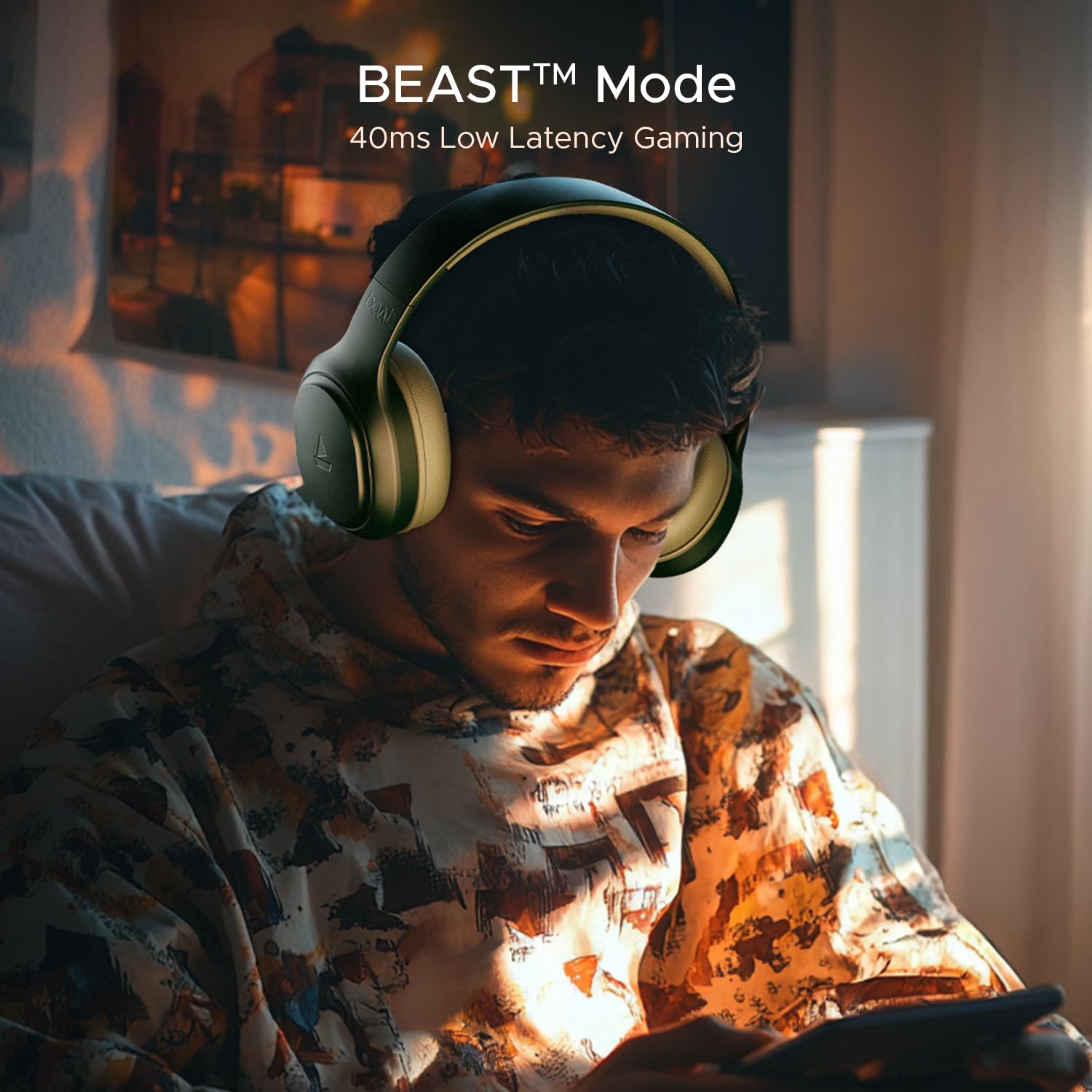 boAt Rockerz 430 w/ 40mm Drivers, Beast Mode w/ 40ms Latency, 40hrs Playback, ENx Tech, Voice Assistant, BTv5.4, Adaptive Fit & Easy Access Controls, Bluetooth Headphones(Sage Green)