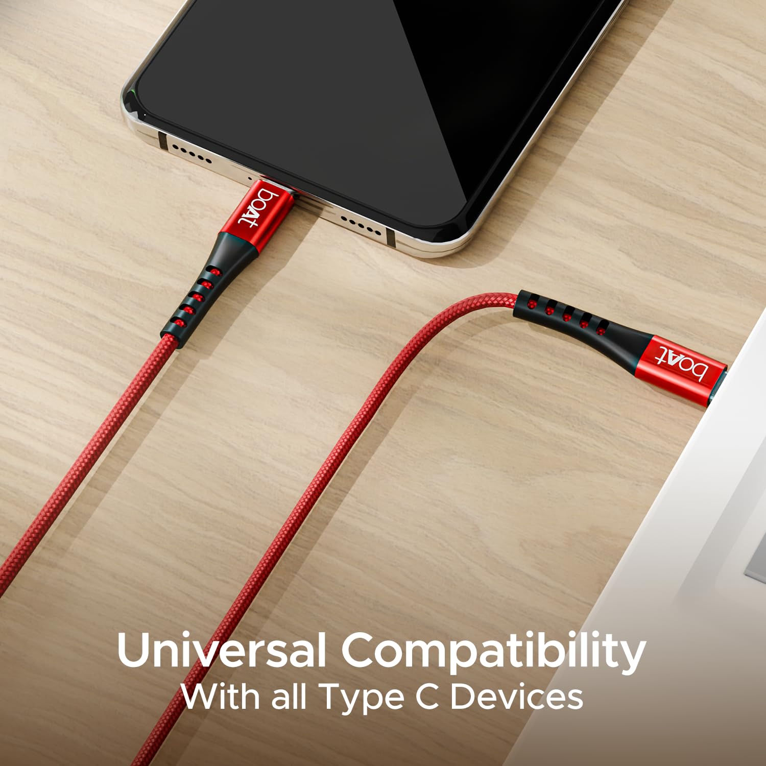 The boAt Type-C C300 cable delivers on its promise of speed and durability. It supports 60W/3A PD fast charging and quickly powers up devices like Xiaomi, OnePlus, and Samsung, making it ideal for those who value time. The sturdy, tangle-free design resists daily wear, and its 480 Mbps data transmission speed ensures seamless file transfers. Compatible with a range of devices, this cable combines functionality with boAt’s reliable quality, proving to be a great value accessory for fast, efficient charging.