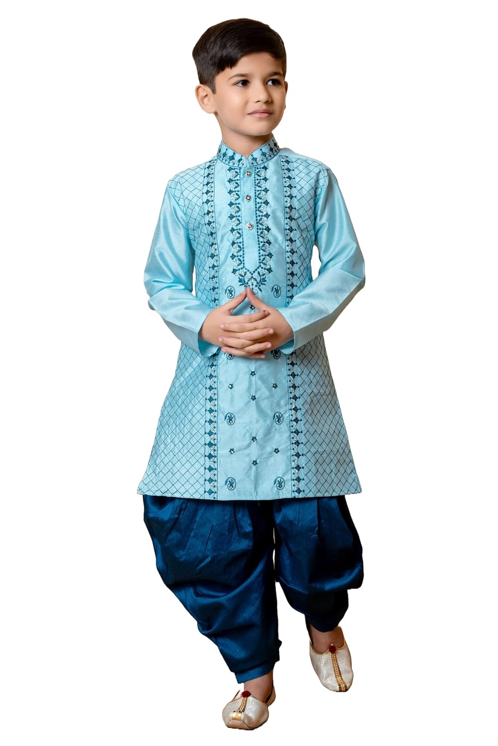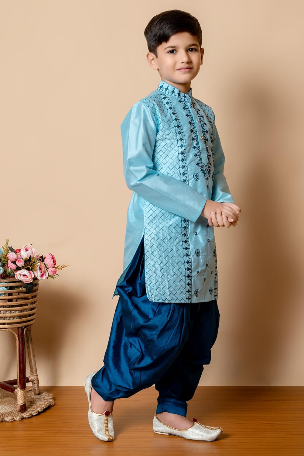 Boys Dupion Silk Kurta & Patiyala Set with Embroidery Work