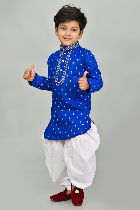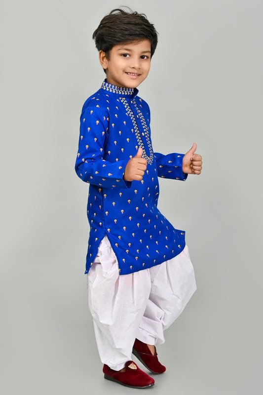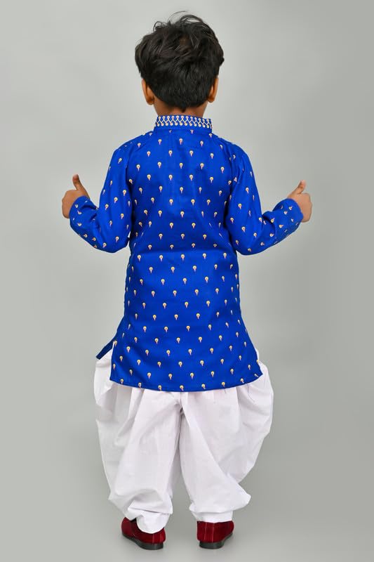 Boy’s Dupion Silk Traditional Regular Printed Mandarin Collar Kurta & Pajama