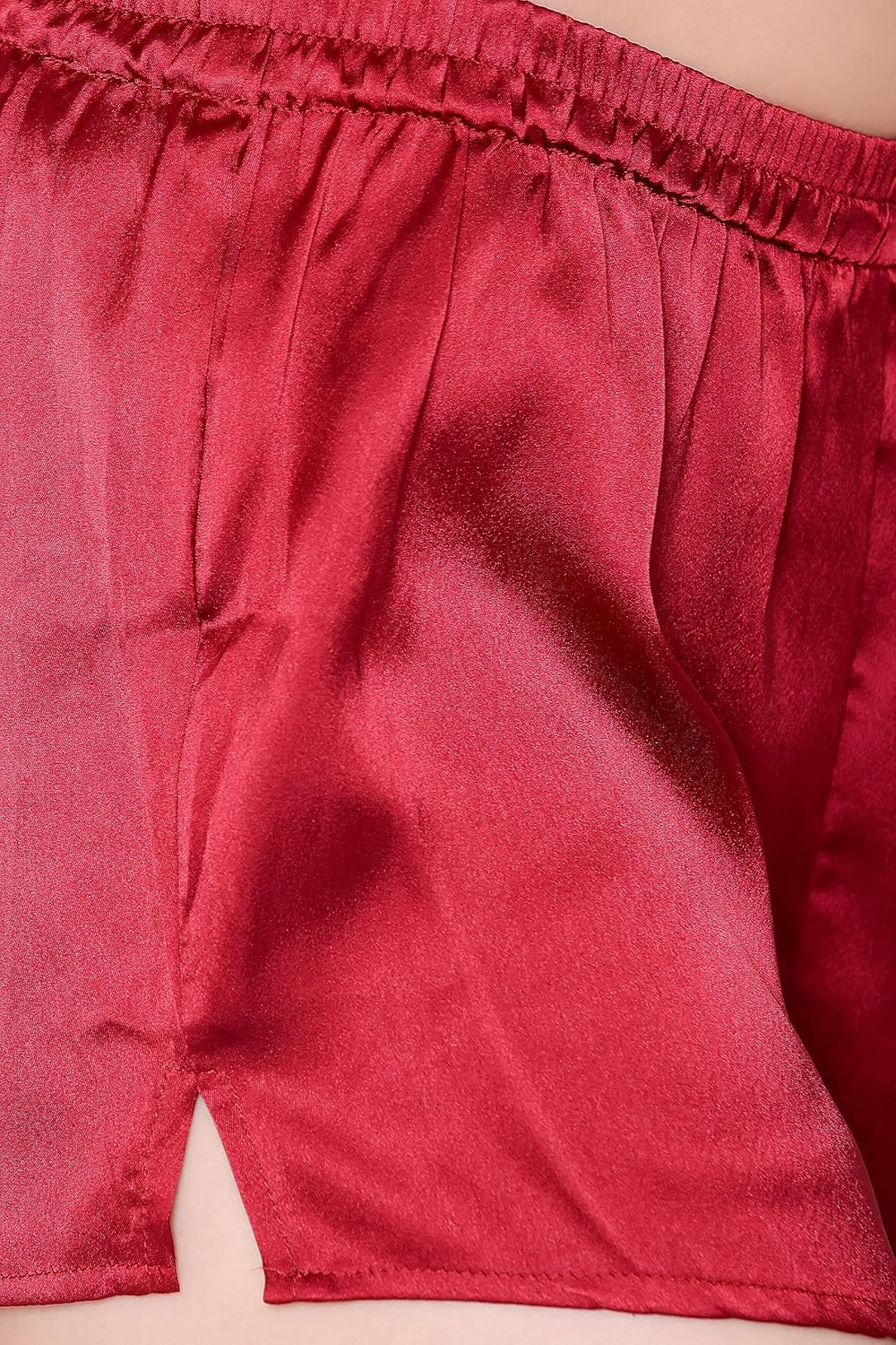 BROIDEN Pajamas Womens Satin Sleepwear Silk Shorts Set Soft Sleep 2 Piece Nightwear Set