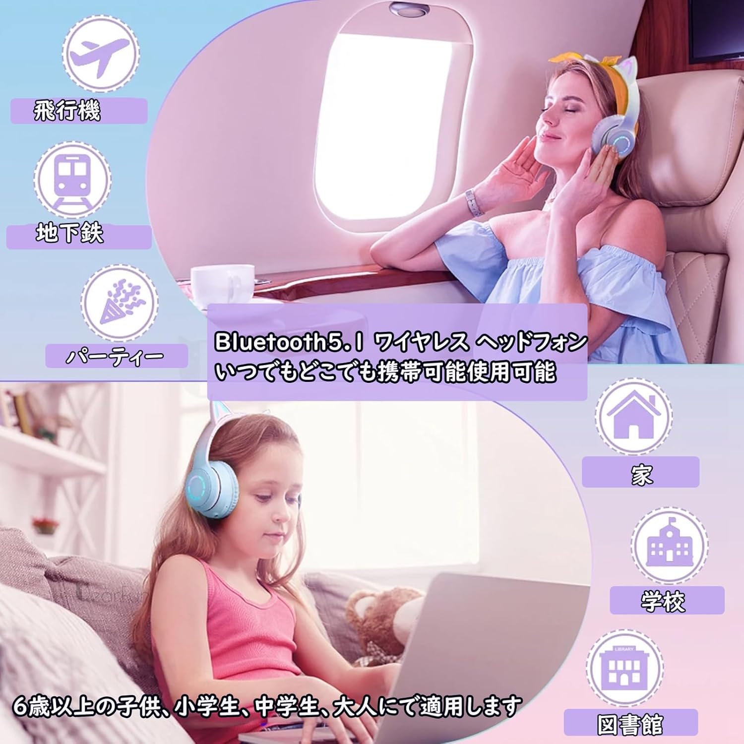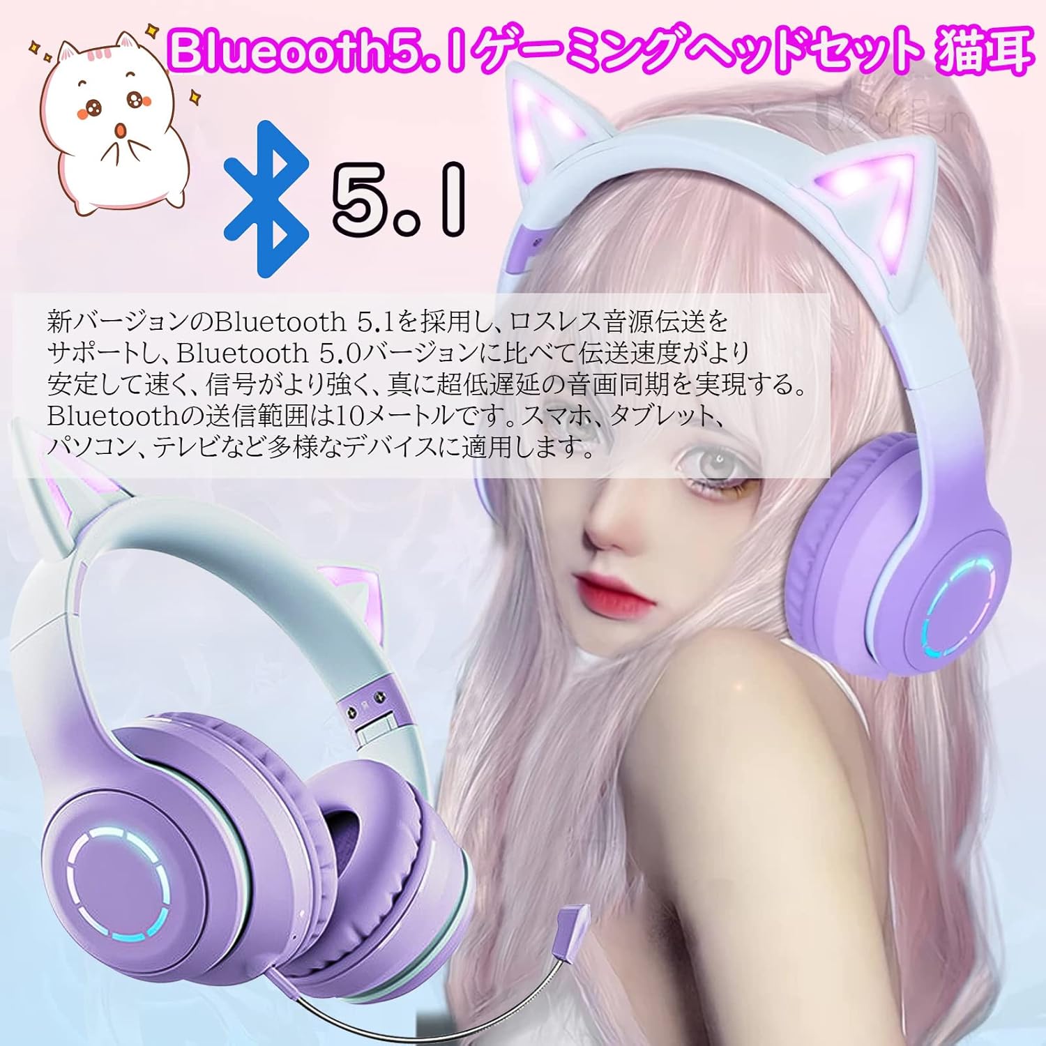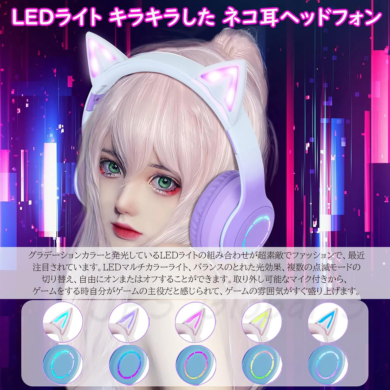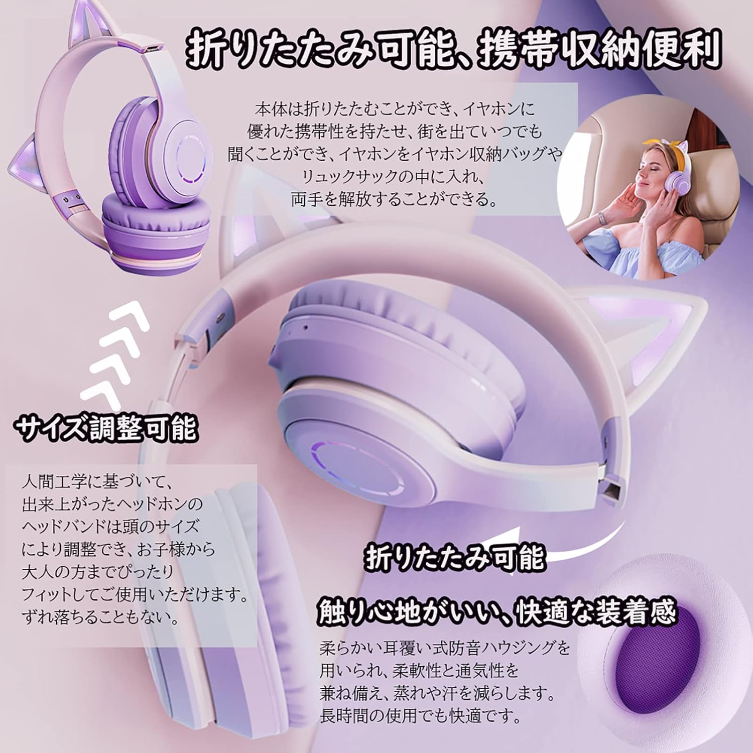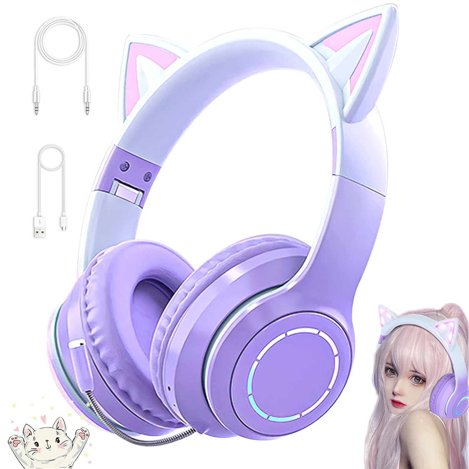 Cat Ear Headphones Wireless Headphones Bluetooth 5.1 Wireless Noise Cancelling Headphones Wired Wireless Dual Use Over-Ear Headphones Built-in Microphone with LED Light Bluetooth Headphones Gaming Headphones with Detachable Mic Size Adjustable for Adults Children PC Gaming Headsets HIFI Stereo, Deep Bass, Sealed Type, Foldable, Christmas / Birthday / New Year Gift