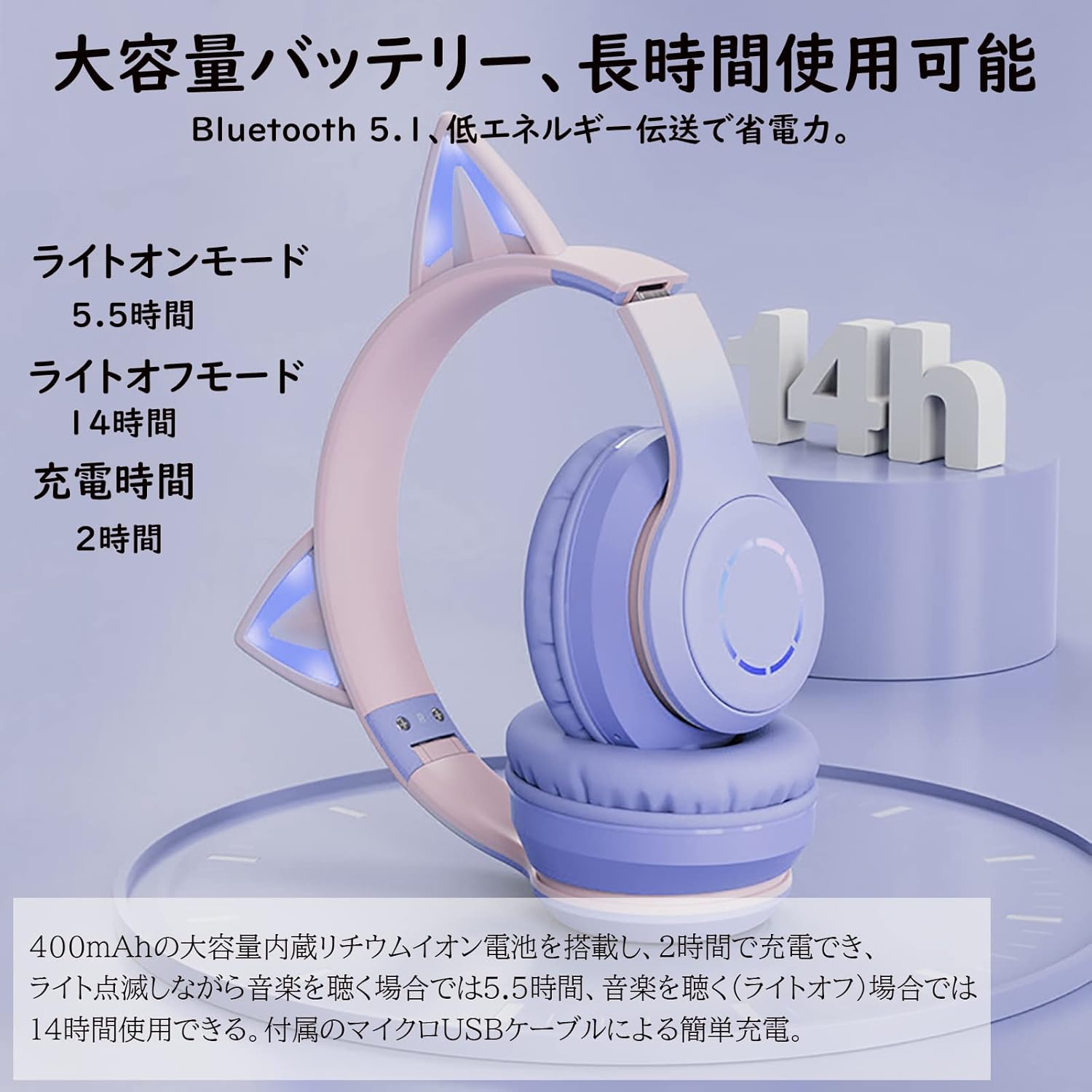 4 reviews for Cat Ear Headphones Wireless Headphones Bluetooth 5.1 Wireless Noise Cancelling Headphones Wired Wireless Dual Use Over-Ear Headphones Built-in Microphone with LED Light Bluetooth Headphones Gaming Headphones with Detachable Mic Size Adjustable for Adults Children PC Gaming Headsets HIFI Stereo, Deep Bass, Sealed Type, Foldable, Christmas / Birthday / New Year Gift
