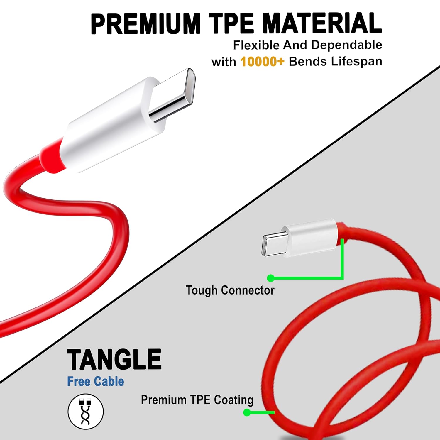EXTRA TOUGH, EXTRA SLEEK: Our premium, intricate flat wire not only makes the cable durable and long lasting to suit a variety of everyday connection needs but also ensures it lasts several times longer than standard cables