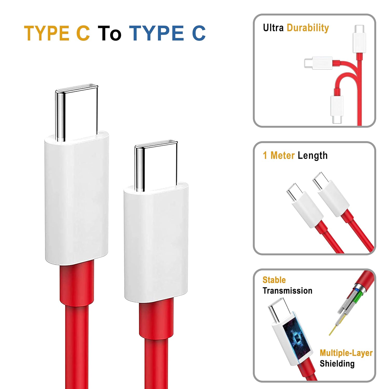 CEDO 65W OnePlus Dash Warp Charge Cable | 6.5A USB Type C to C PD Data Sync Fast Charging Cable Compatible with One Plus 8T / 9 / 9R / 9 Pro / 9RT / 10R / Nord & for All Type C Devices 1 Meter (Red)