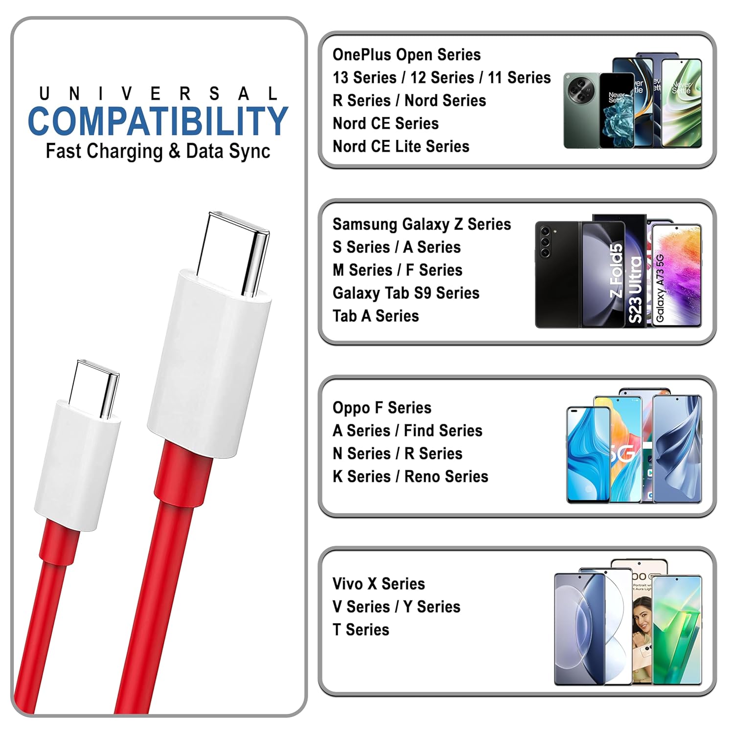 RELIABLE AND SAFE: The smart chip inside it can intelligently identify the current required by your device to prevent it from overheating and overcharging. Cedo Type C cable is compatible with all the latest android smart phones, earbuds & tablets with type c ports