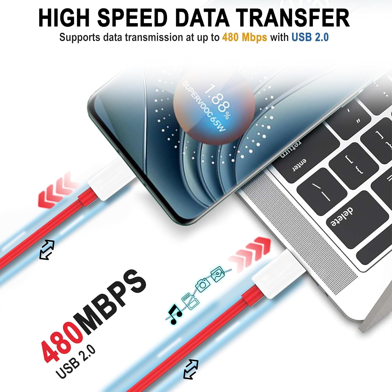 HIGH SPEED DATA SYNC: Supports data transmission at up to 480 Mbps, which can save a lot of time when transferring data such as files, photos, music, movies, videos, etc. between your phone and other devices