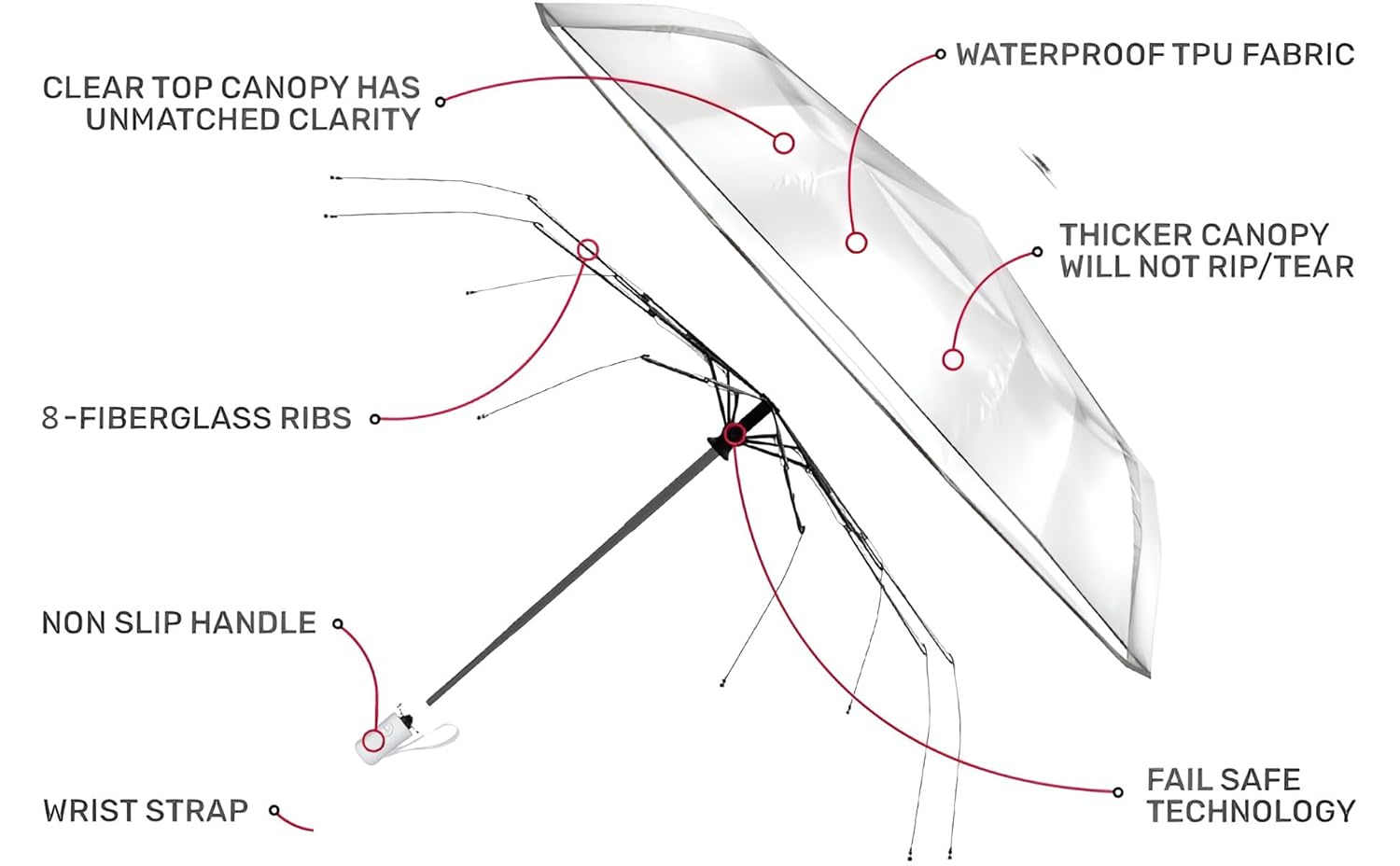 This Contacts umbrella is really handy for travel. The transparent canopy looks great, lets me see where I’m going even when it’s raining. It’s waterproof and windproof, so it holds up well in rough weather. The metal frame is sturdy but lightweight, makes it easy to carry around. I like that it’s portable and comes with a compact design. Looks really fantastic.