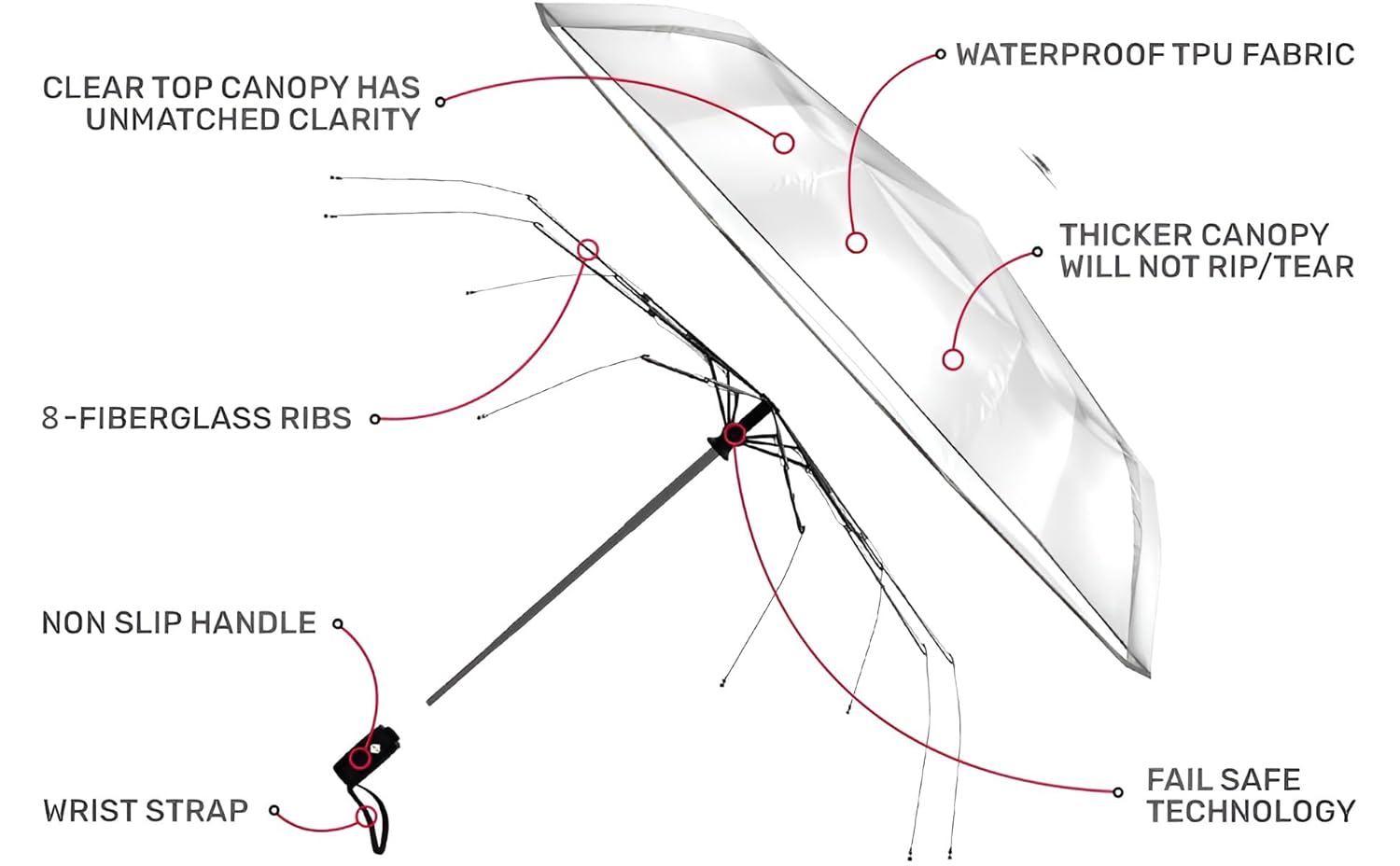 8 reviews for Contacts Transparent Windproof Travel Waterproof Canopy, Strong Fiberglass Frame Portable Umbrella for Rain