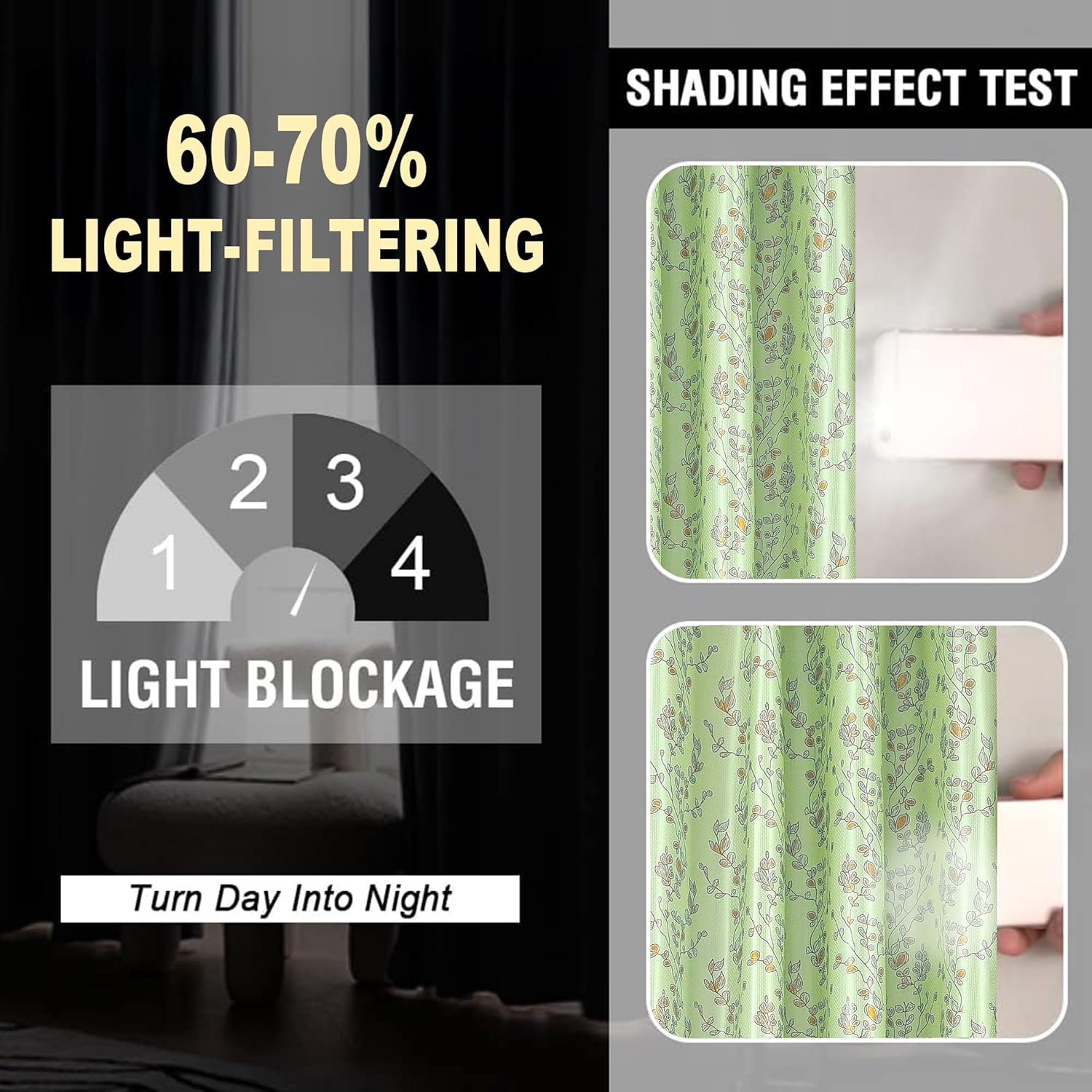 These curtains are the best for the price 🙂 Turns day to night once drawn. Extremely pleased