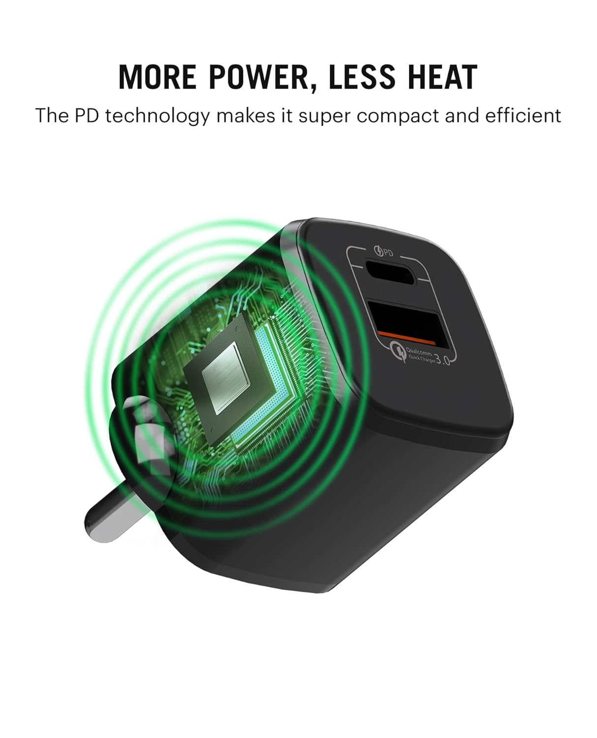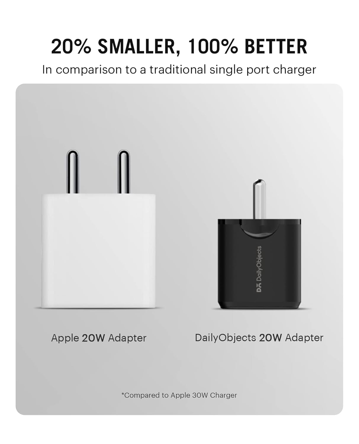 DailyObjects Surge PD 20W Dual Port PPS Ultra Fast Charger Adaptor | Advance GaN II Technology Adapter with Multi-Layer Protection | BIS Certified | Power Adaptor Compatible with iPhone 15/14/13/12/11