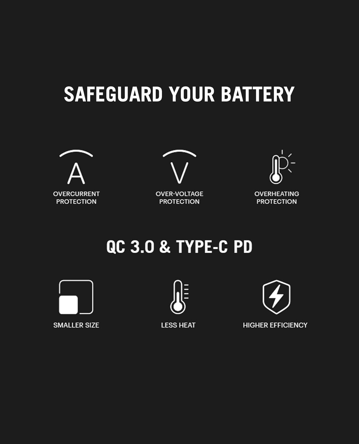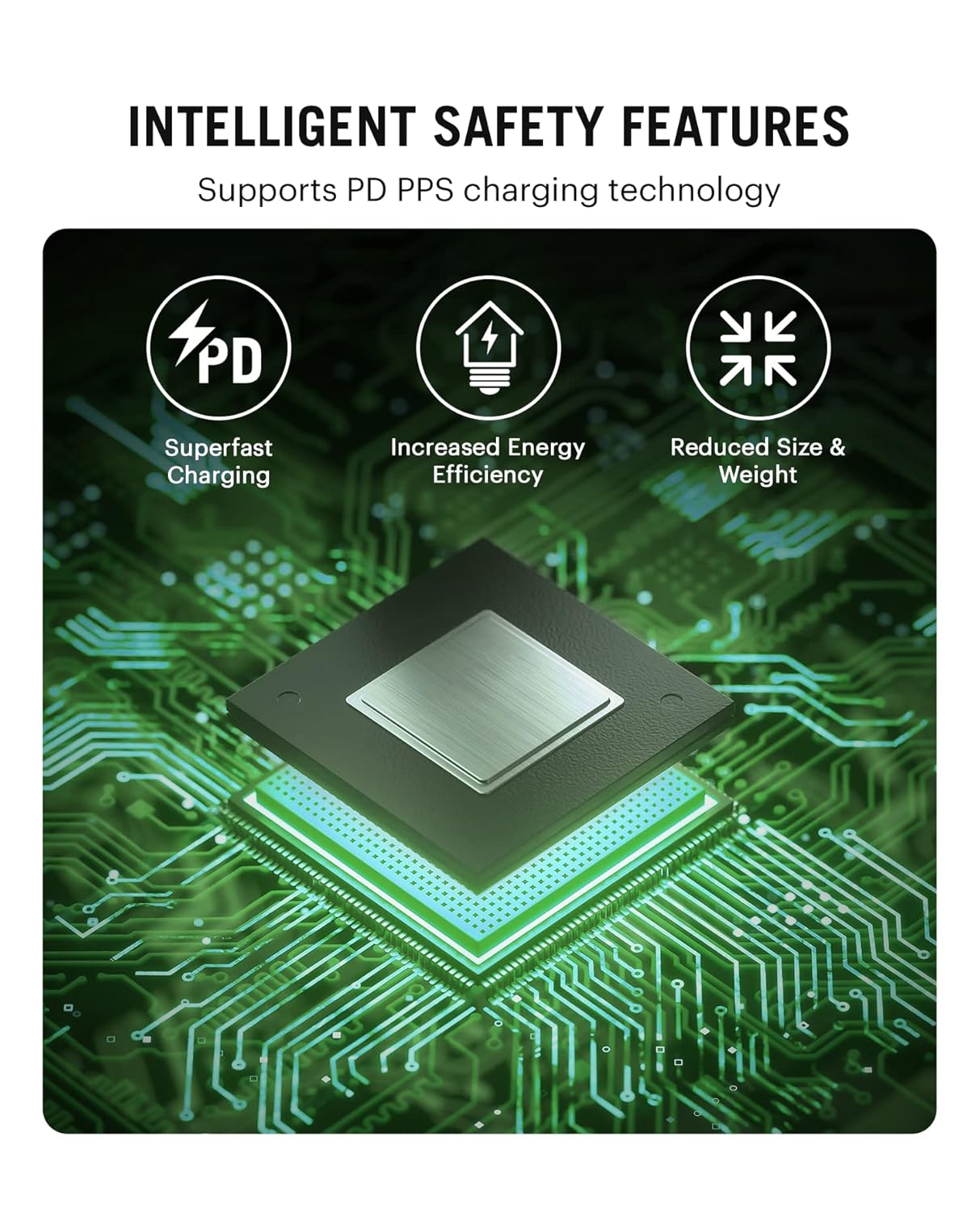 This supports Programmable Power Supply (PPS), an advanced charging protocol that can dynamically change voltage and current in real time. Based on the USB-C device connected, it can Fast charge more efficiently and produce less heat, resulting in increased battery lifespan. Multiple protection technology of the charger offers safety from over-current, over-voltage and short circuits.
