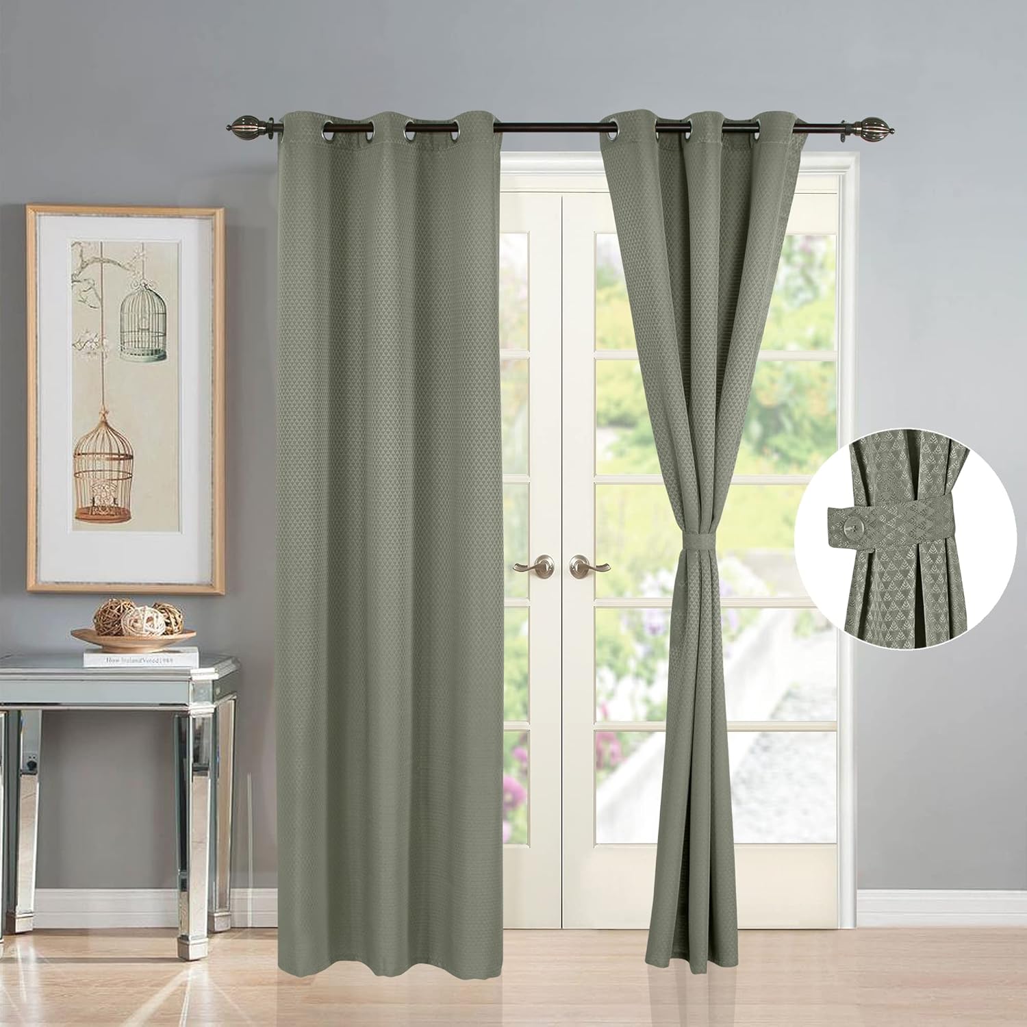 MATCHING TIEBACKS INCLUDED: Each curtain panel comes with self-fabric, made to match tie back that blend into the curtains and can be attached to button available at the rear side of the curtain to control the amount of light or for aesthetic purpose. You dont have to invest separately into tiebacks to complete your door/window makeover regimen.