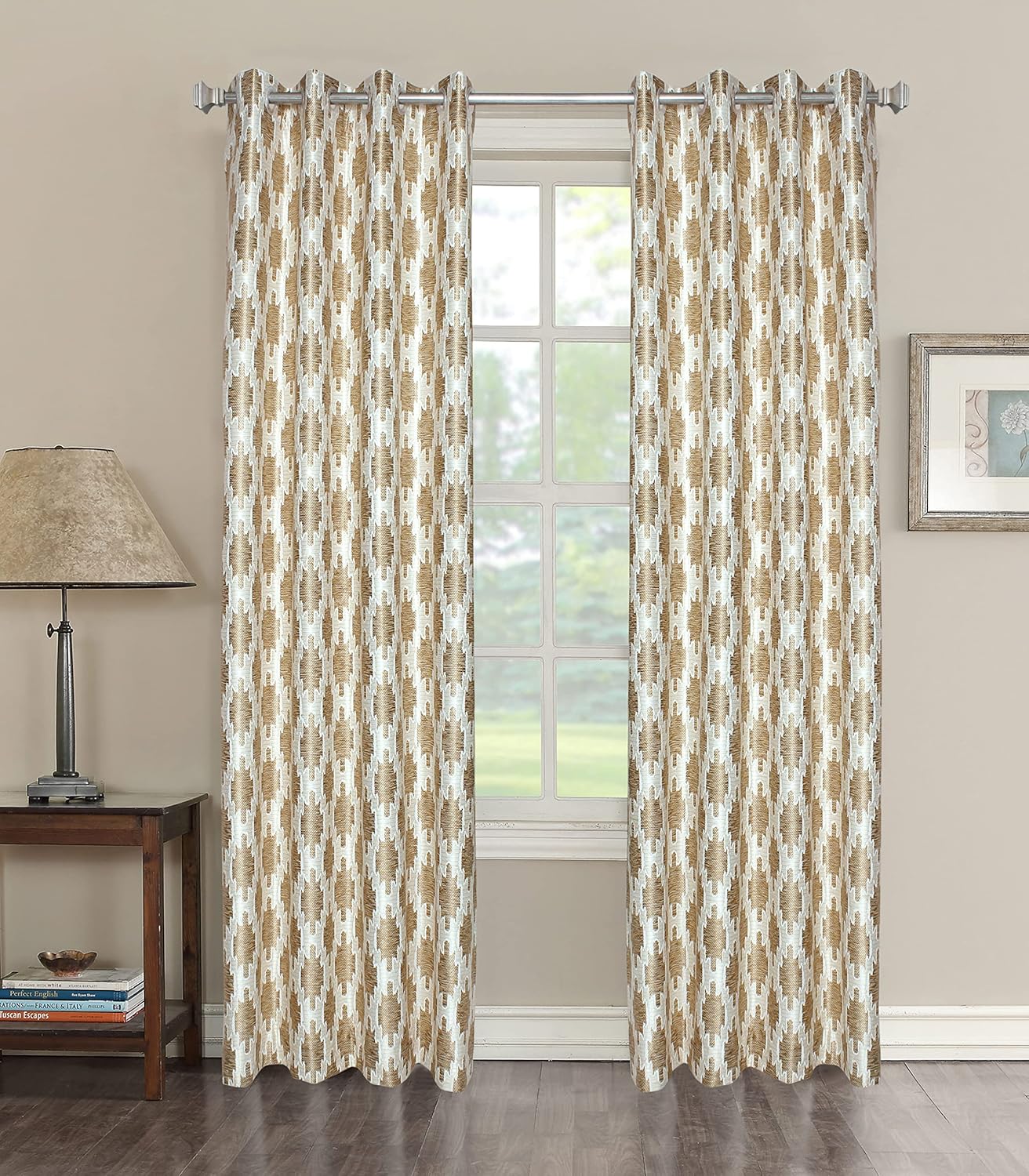 Decoholic Ultimate Digital Print Insulated Crystal Grommet Room Darkening Curtains/Drapes for Bedroom/Living Room Window – 6 feet – 2 Panels, Gold