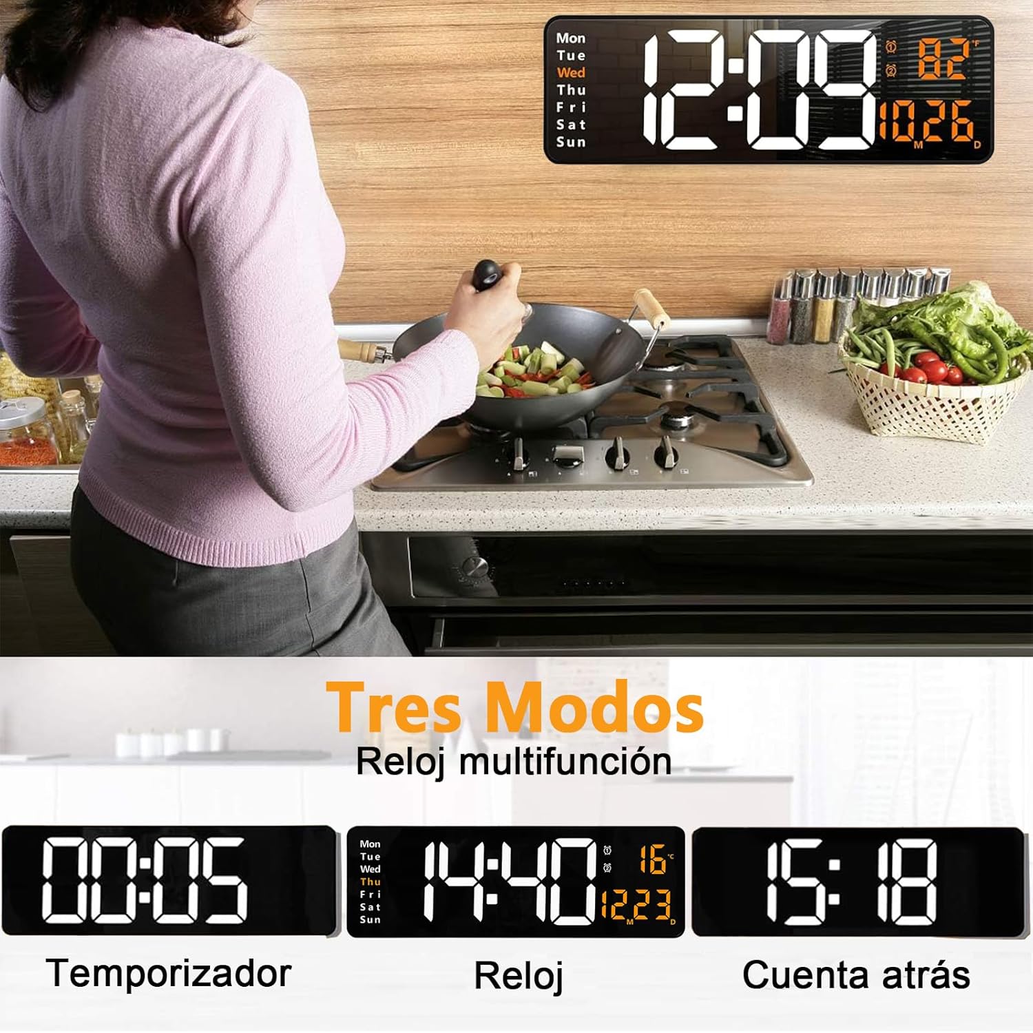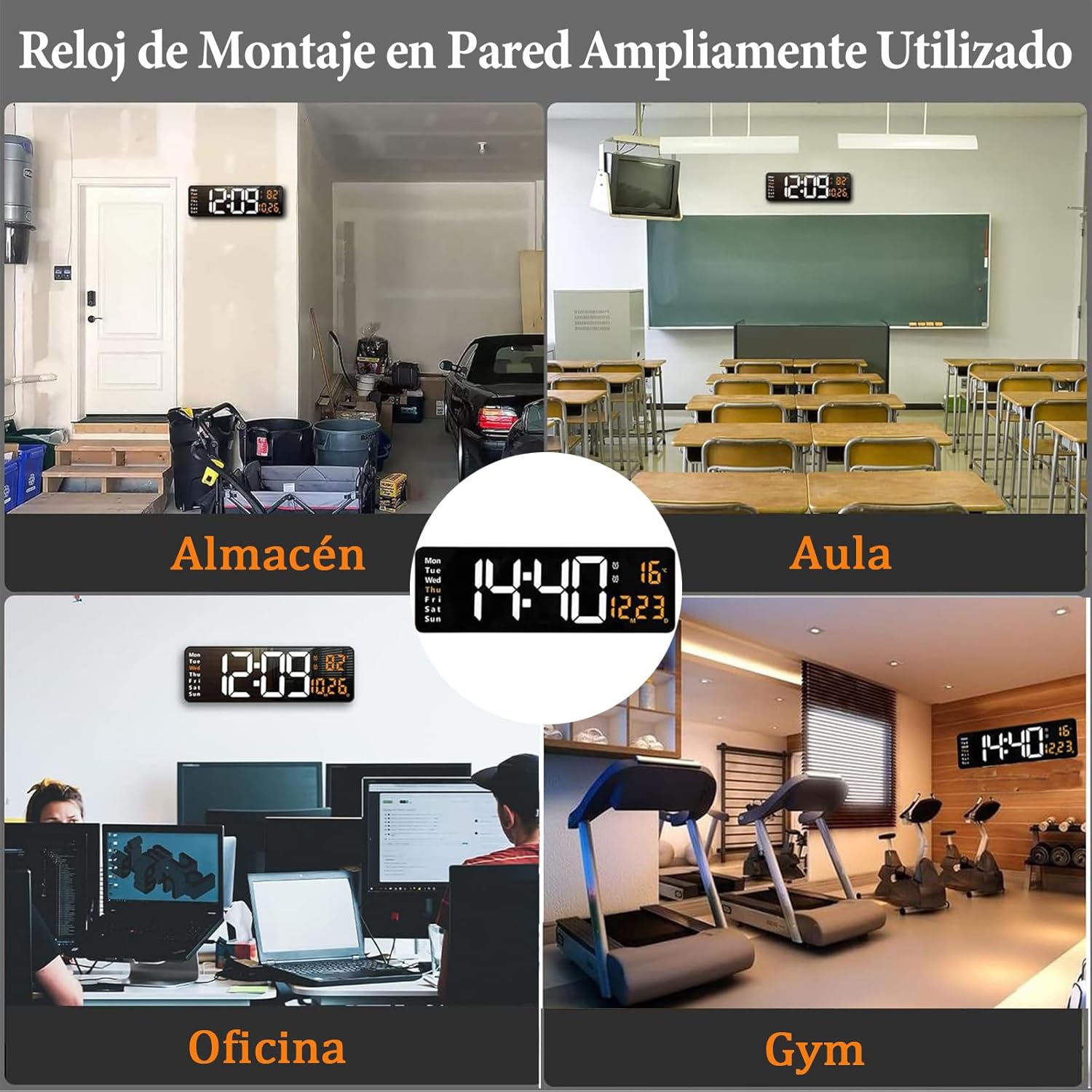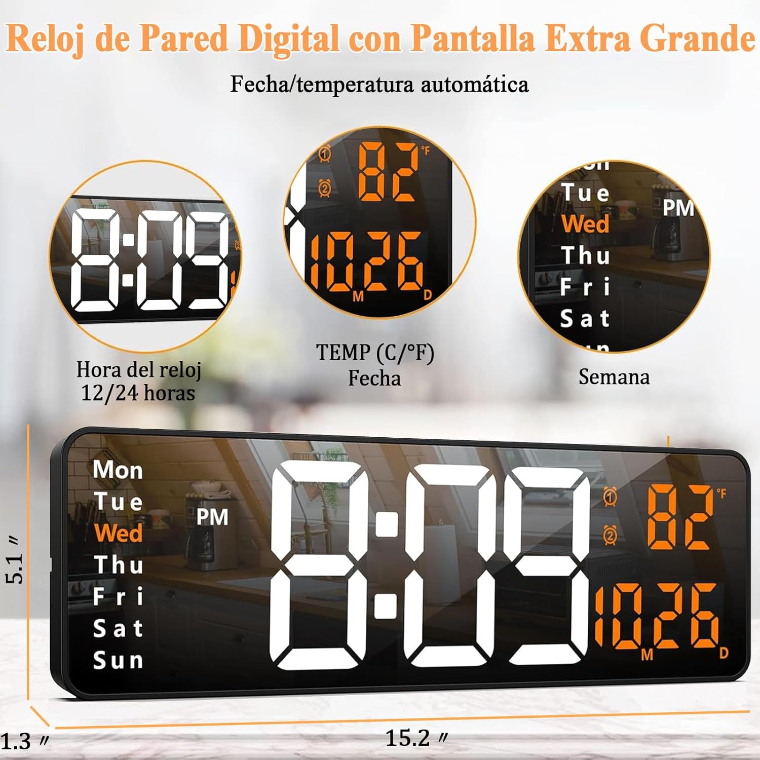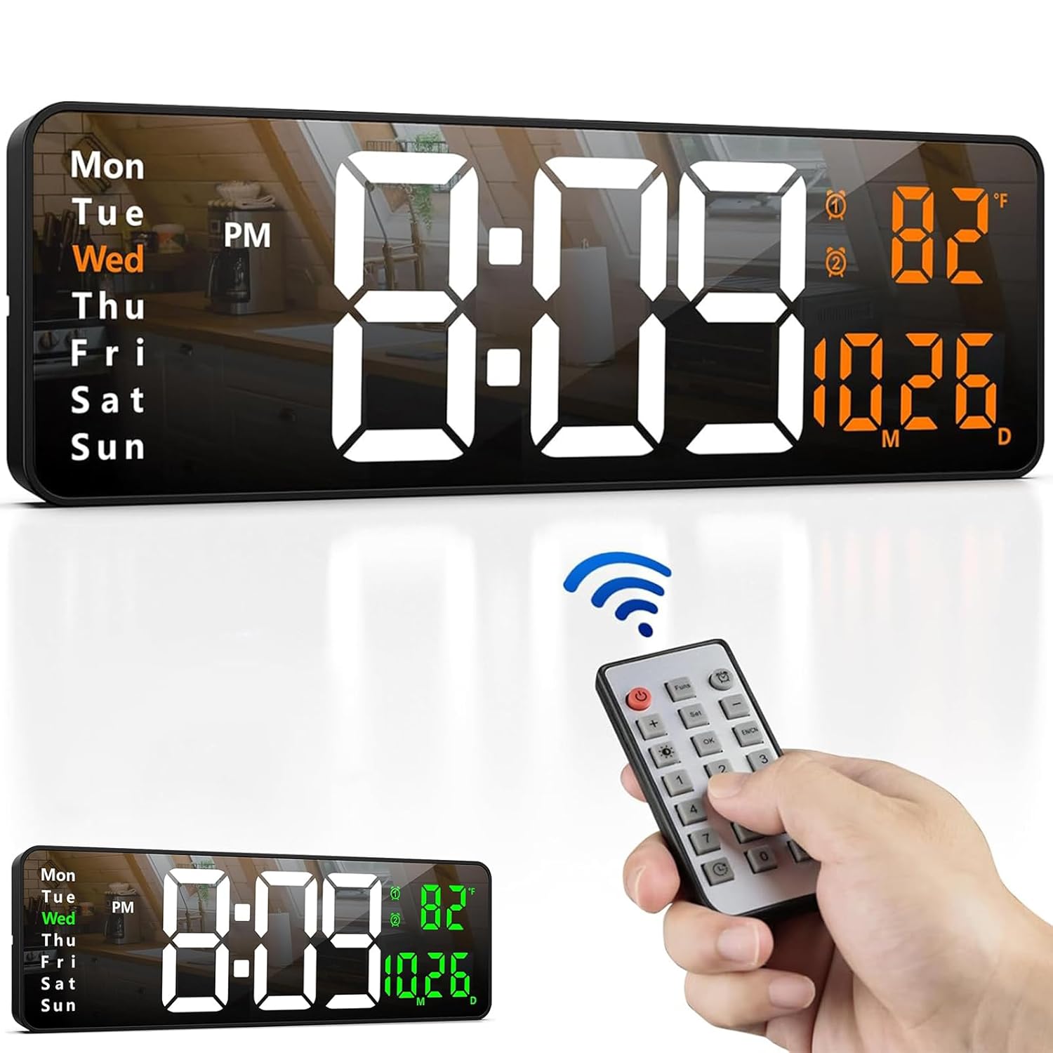 Digital Wall Clock 16 Inch Large Display with Date, Temperature, Week, Remote Control, Large Digit, 12/24 Hours, LED Digital Clock for Living Room, Classroom, Gym, Church