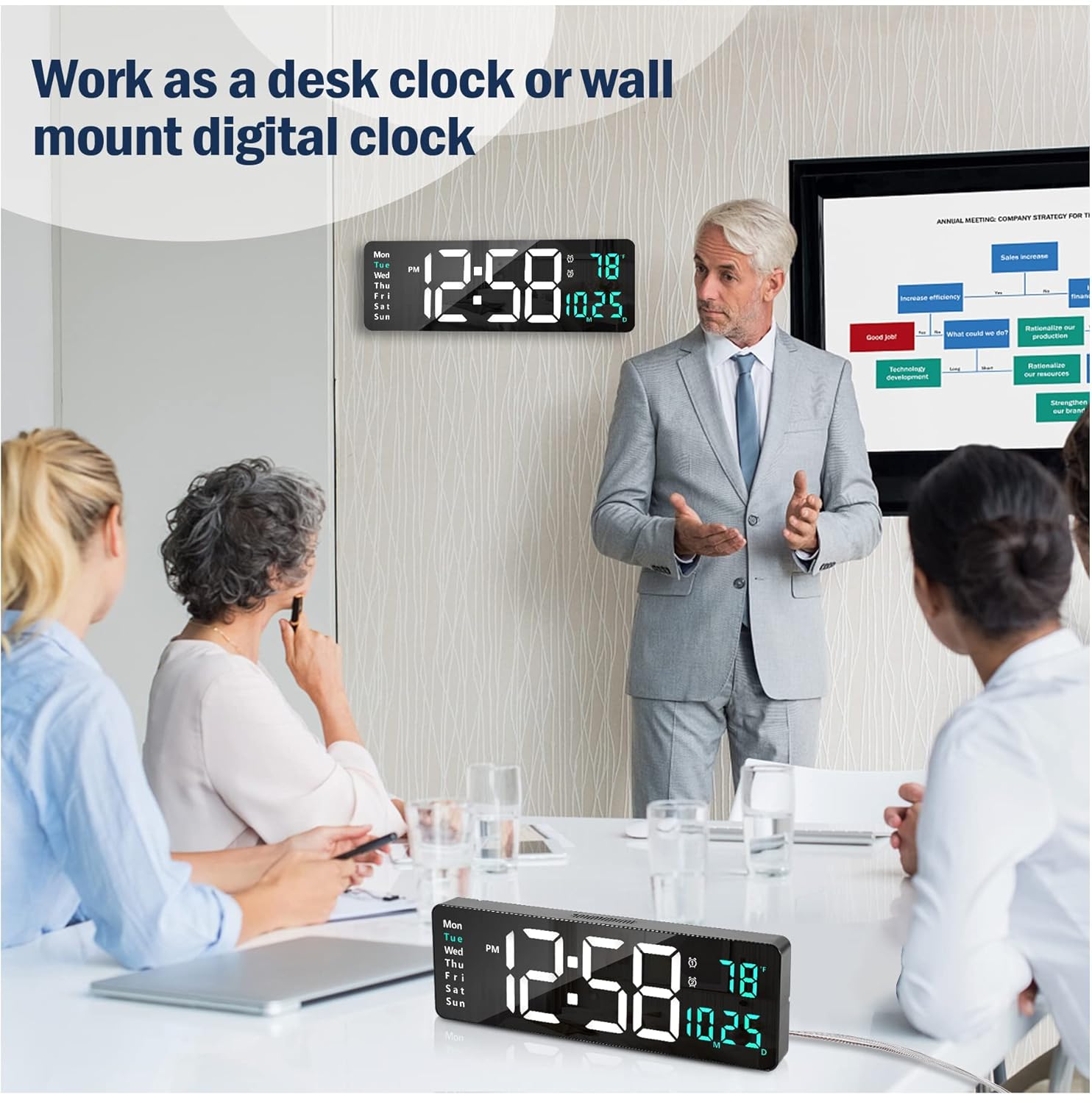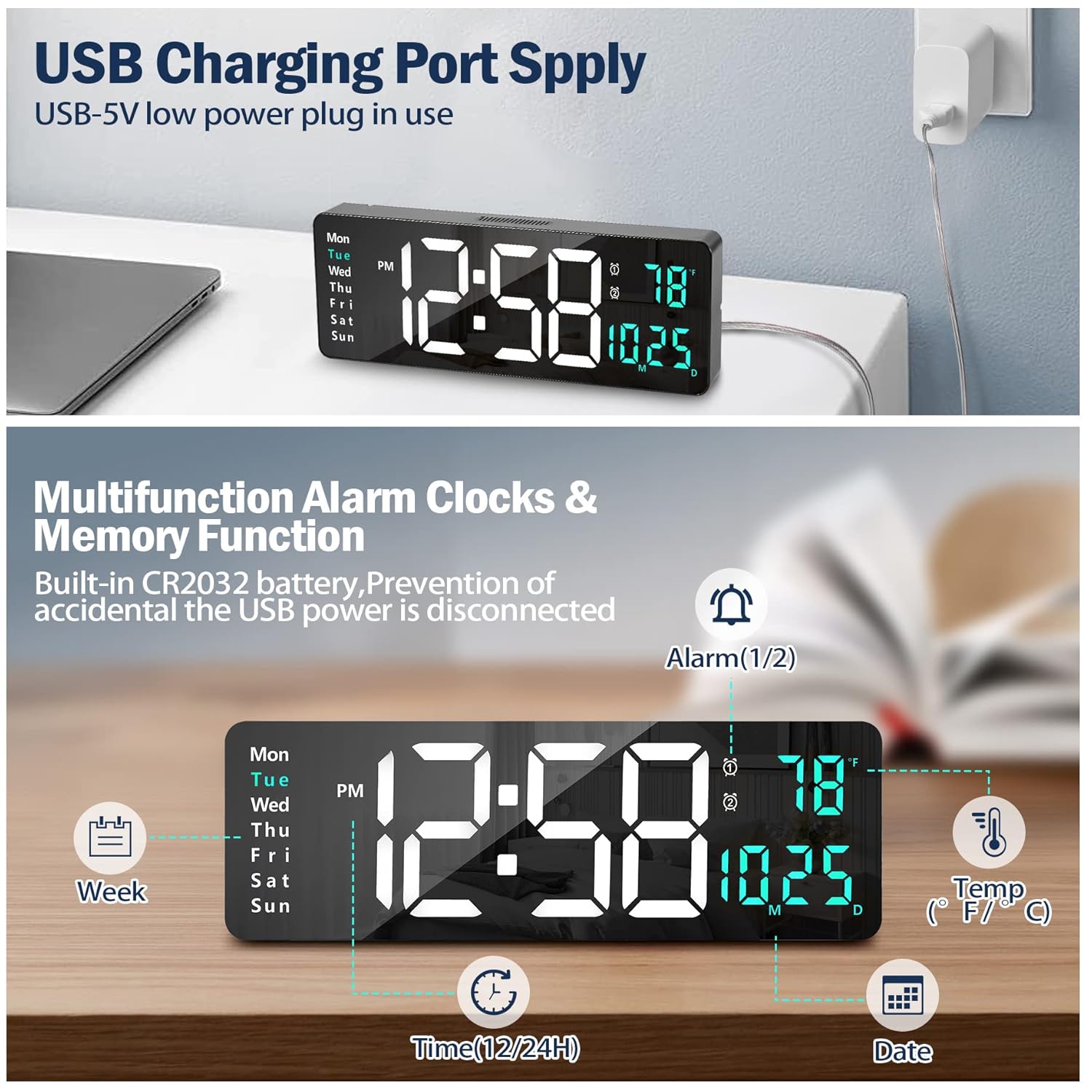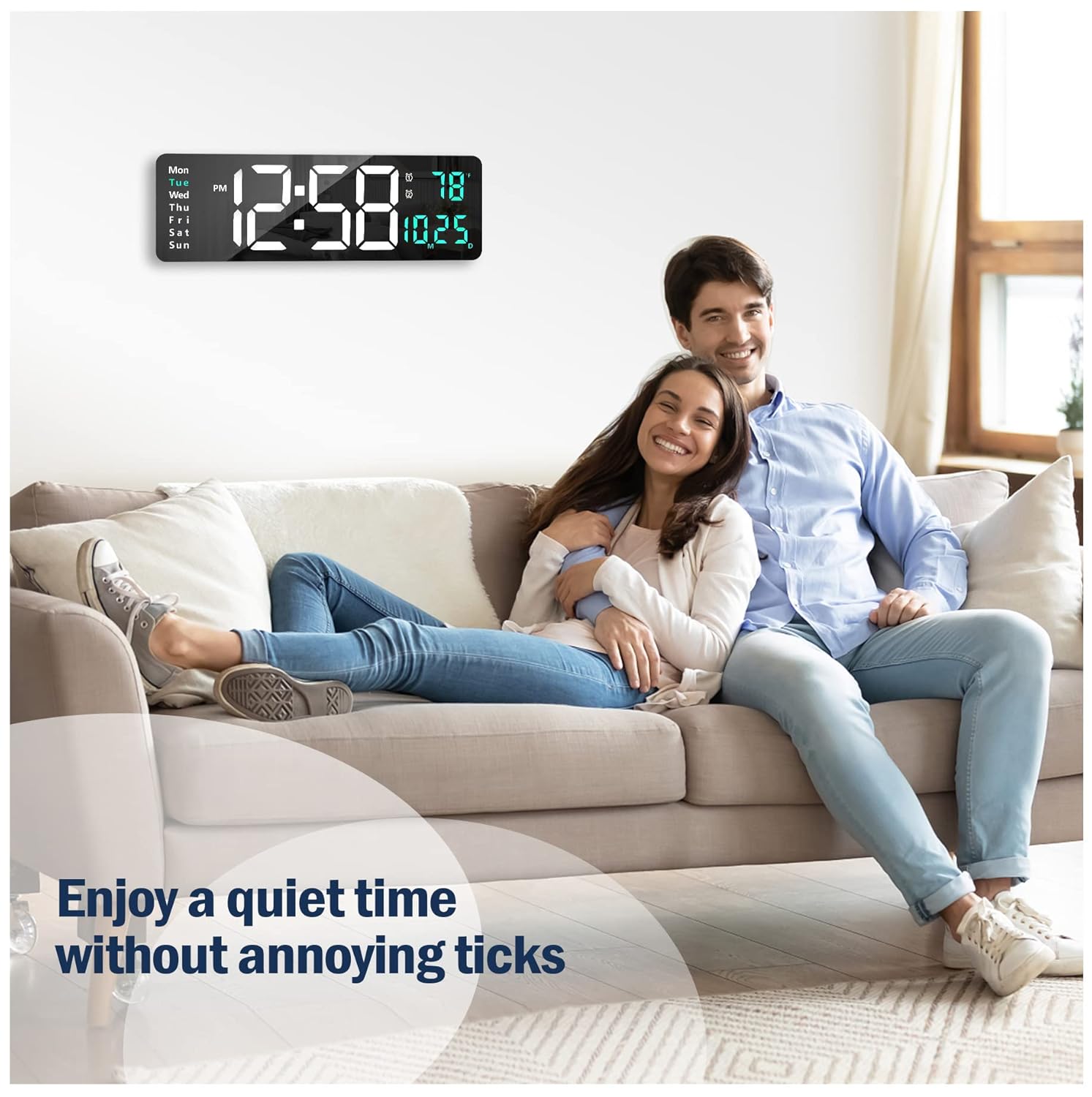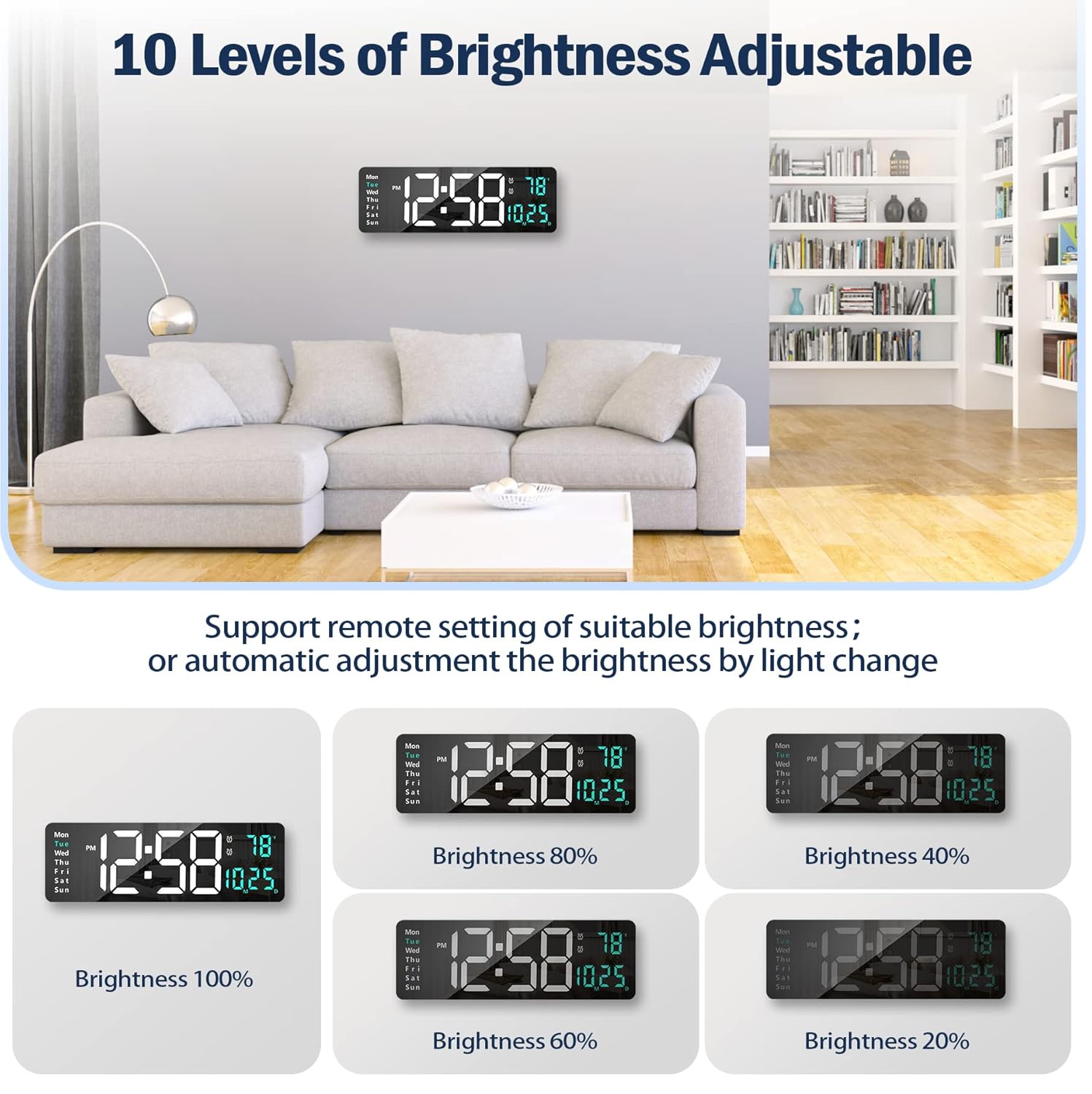 Keep your eyes in perfect shape by adjusting the brightness to the environmental conditions. The wall clock features 10 brightness levels you can easily adjust manually, using a remote control, or let the clock auto-adjust for a clear and comfortable view. The large digital wall clock will automatically adjust its brightness depending on the environment, making it perfect for nighttime reading time and all-day and night activities.