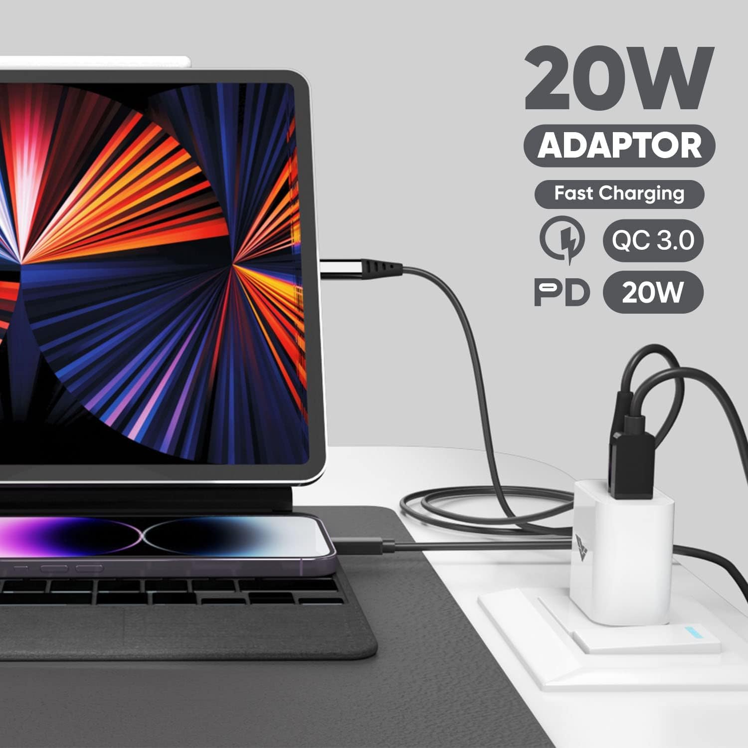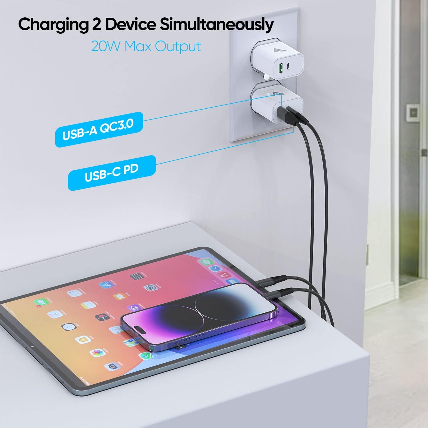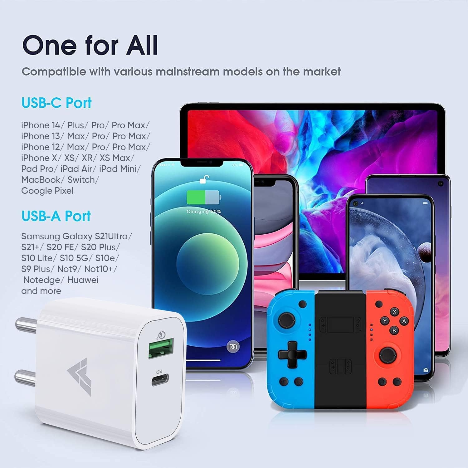DR VAKU® 2 in 1 PD QC 20W Dual Port Charger Type C Adapter for iPhone 16/16 Plus/16 Pro/16 Pro Max, 15/15 Plus/15 Pro/15 Pro Max, 14/13/12 Series PD 3.0 Multiple Protection Fast Charging Adaptor-White