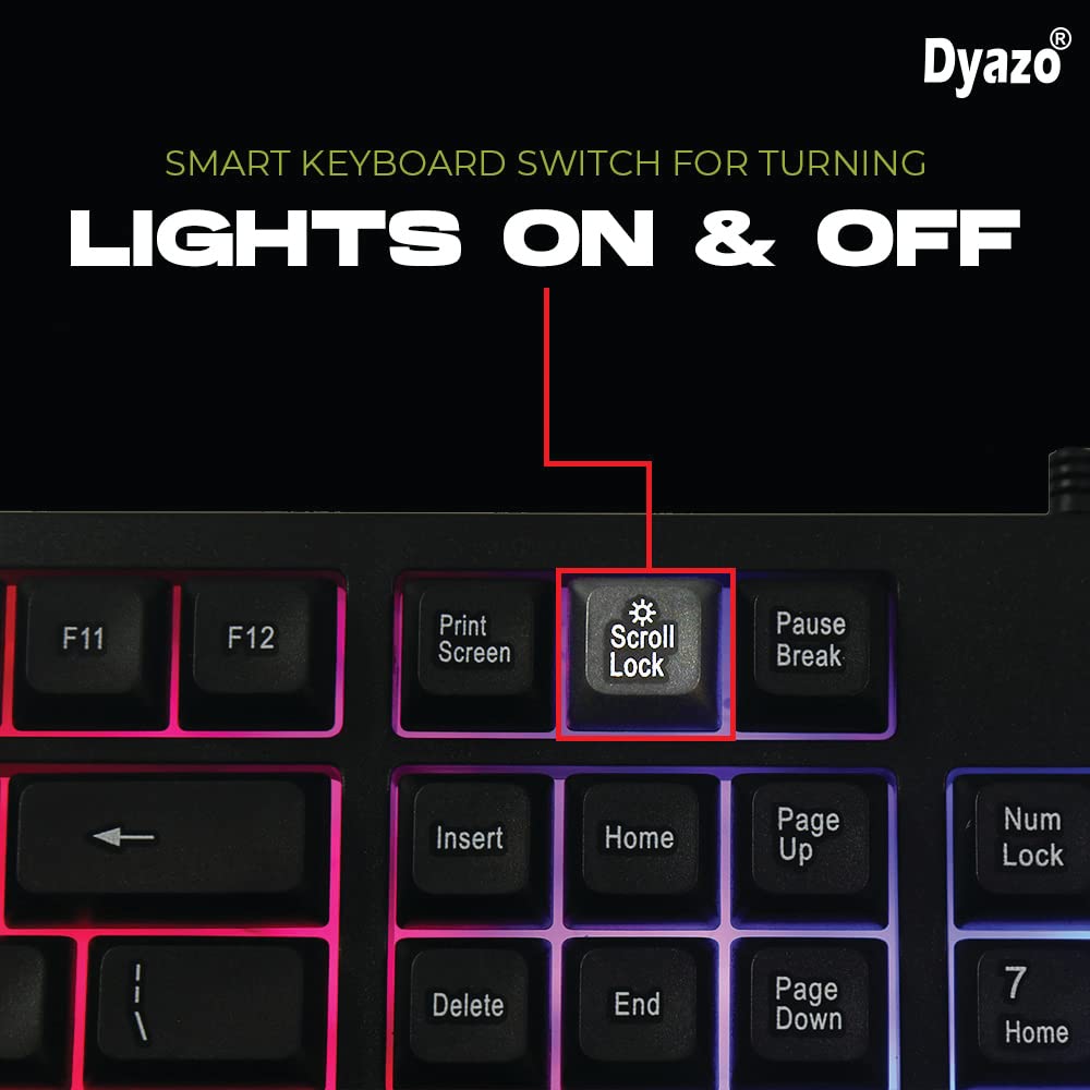Dyazo Wired Gaming Keyboard and Mouse Combo Static RGB Static Light (only 2 Modes on & Off) for Windows Compatible for PC, Laptop (Black)