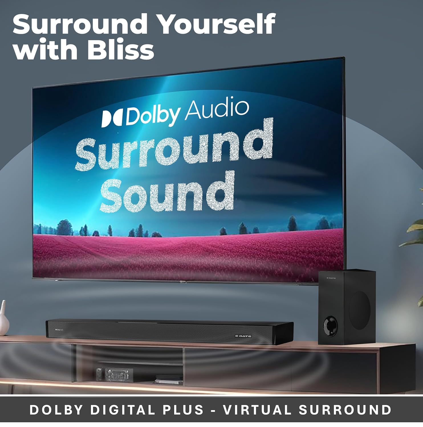 E GATE Enigma 315D, Dolby Digital Soundbar, 300W Virtual Surround 2.1 Home Theatre, Sound bar for TV with Mega 16.5cm Subwoofer | 3 EQ Mode, BT 5.3, HDMI (eARC),Optical, USB | eGate bluetooth speakers